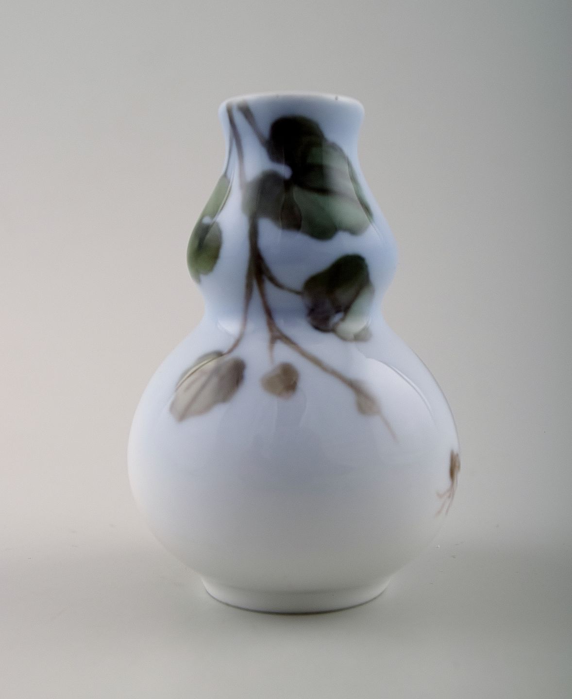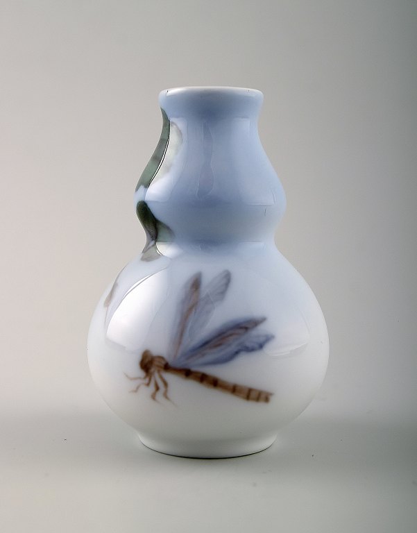 Royal Copenhagen Art Nouveau vase decorated with insect. Measures 7 x 4 cm. Marked. 1. Quality, in perfect condition.