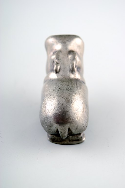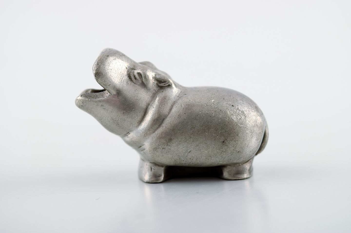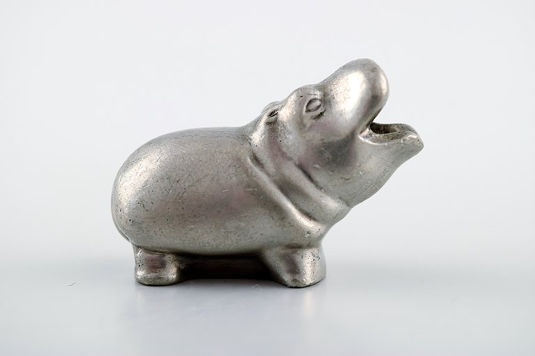 Sjælden figur af flodhest, blyantholder, designet af Just Andersen. Figuren er udformet i tin og signeret 'Just A'. Måler: 4 x 2,5 cm. I god stand.