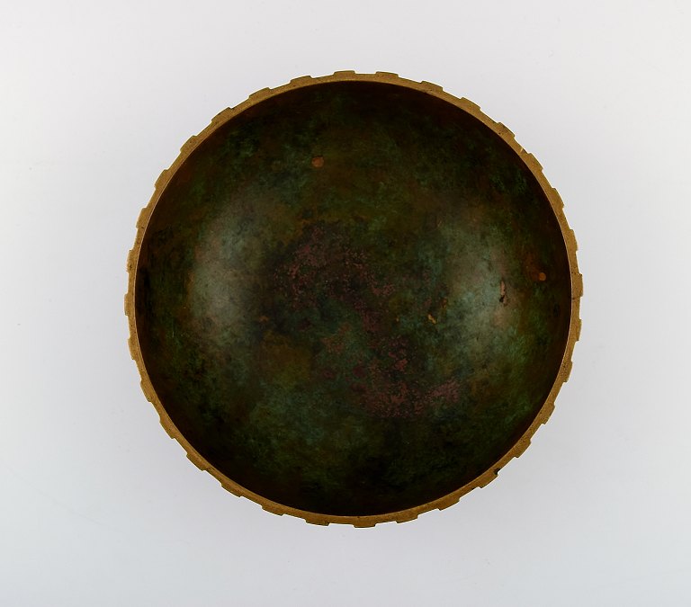 Large Tinos art deco bowl in bronze. Denmark, 1940s. Stamped. In good condition. 22.5 cm. x 9 cm.