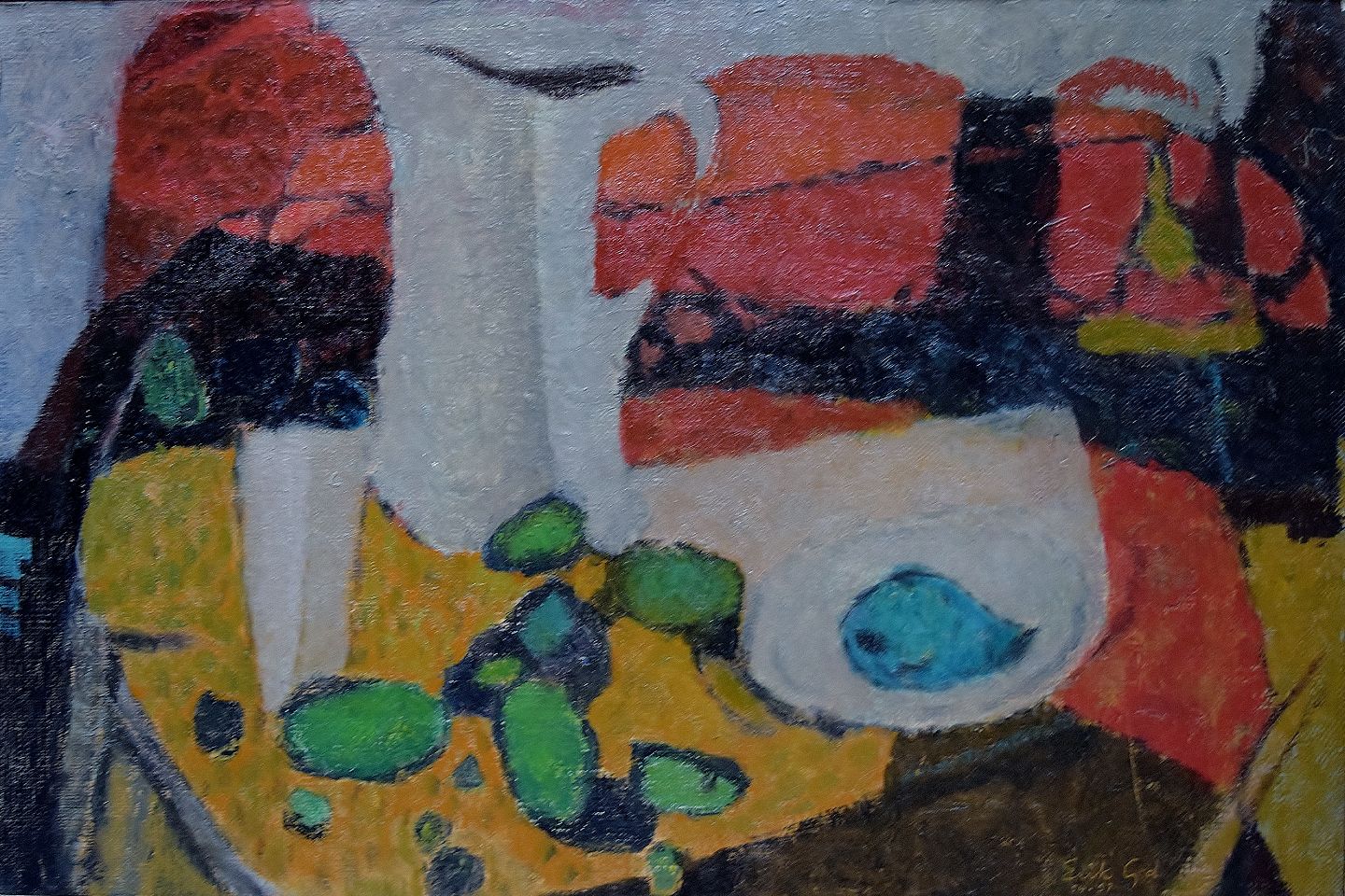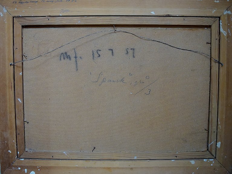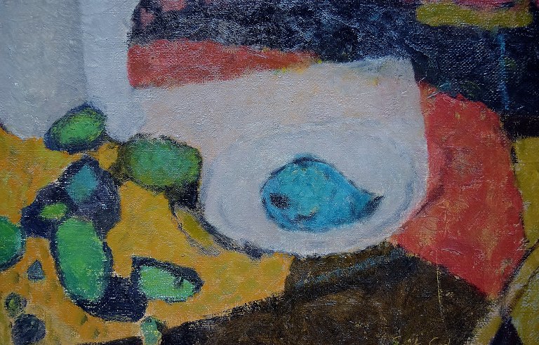 Modernistisk komposition, dateret 1954-57. Olie på plade. Signeret : Erik G D. Ubekendt kunstner. I perfekt stand. Signeret. Måler (ex. rammen) 51 x 34 cm. Rammen måler 9 cm