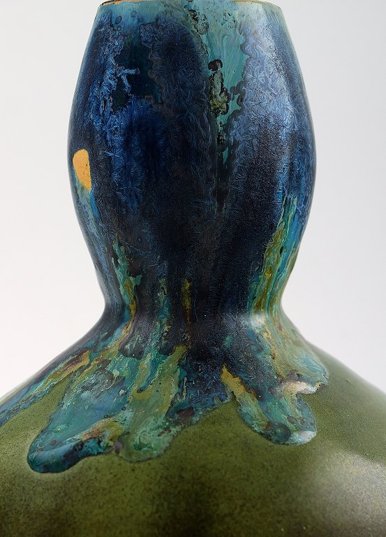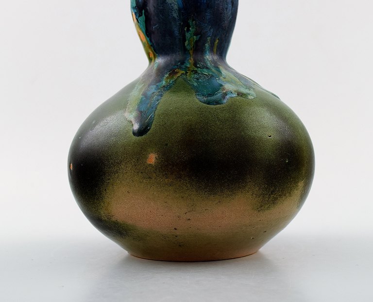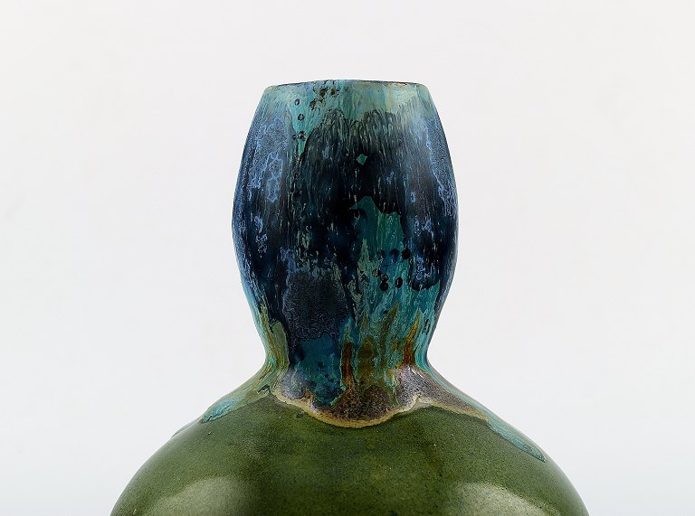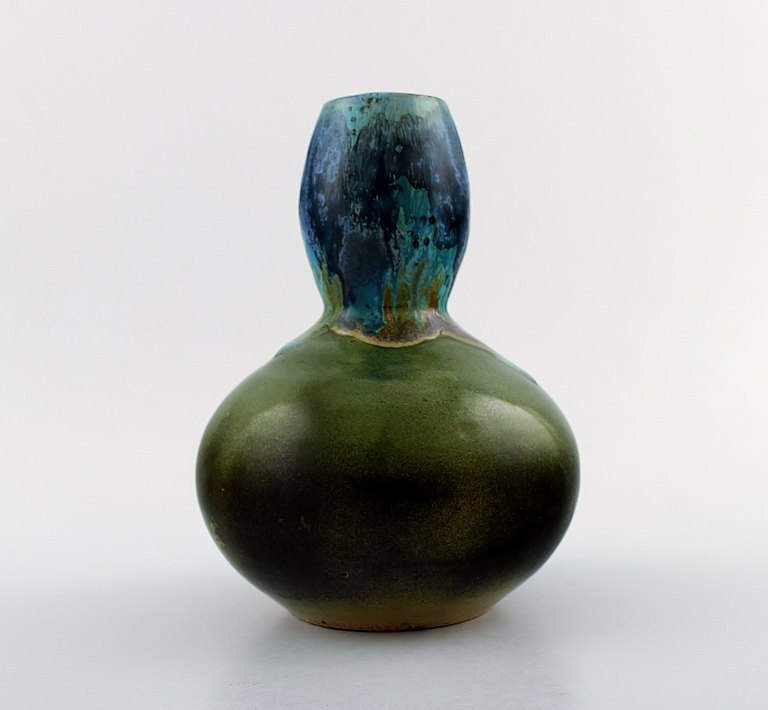 L. Cagnat, fransk keramiker. 1930/40´erne. Art Deco gourd formet keramikvase. Unika arbejde. Smuk polykrom glasur. Stemplet. I perfekt stand. Måler : 19 cm. x 14 cm.