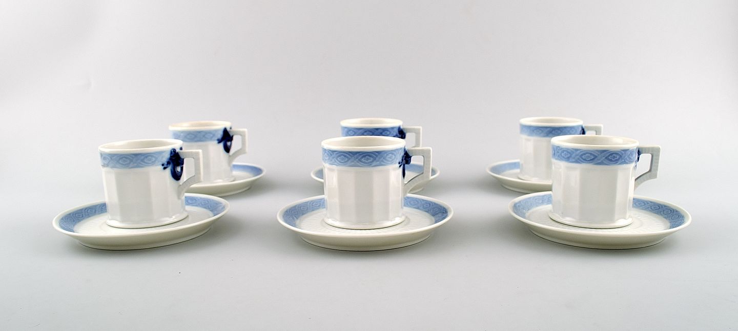 6 sets of Royal Copenhagen Blue Fan pattern Coffee cup and saucer no. 11548. Height 6 cm. 1st. factory quality. Perfect condition.