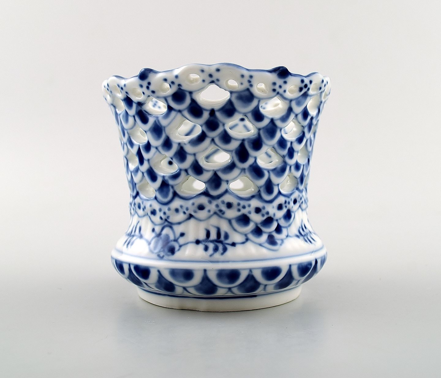 Musselmalet Helblonde bæger fra Royal Copenhagen. Nummer 1015. 1. sortering. I perfekt stand. Højde 7cm.
