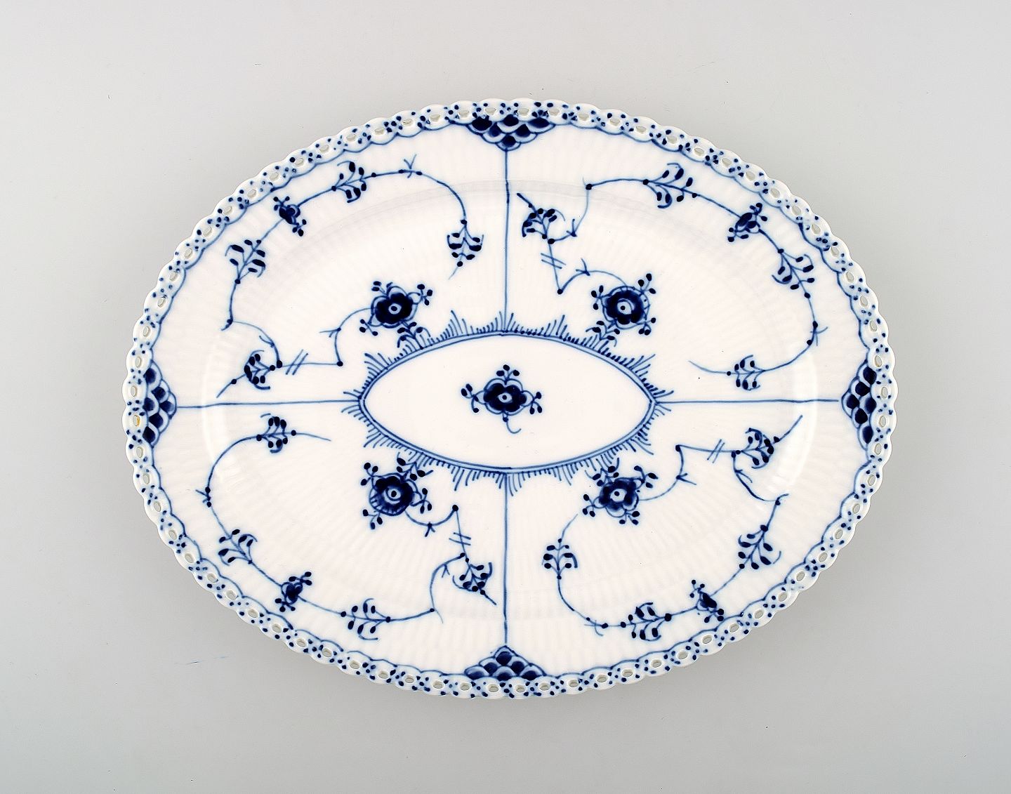 Royal Copenhagen/ Kongelig Musselmalet Helblonde, Aflangt Fad. Dekorationsnummer 1/1147 eller 374. Længde 29,5 cm. Bredde 23 cm. i perfekt stand. 2. sortering.