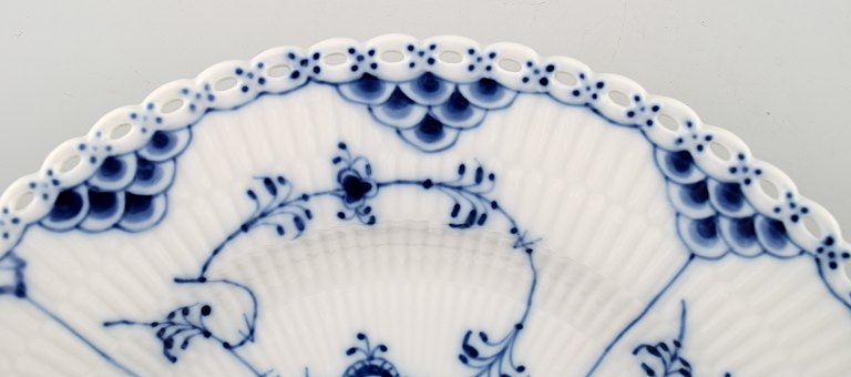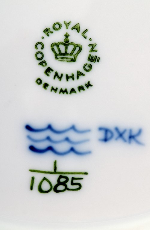12 plates Royal Copenhagen Blue Fluted lunch plates Number 1085, 5 plates in 1st. factory quality. 7 in second factory. Diameter 23.5 cm. Very good condition.