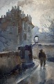 Mogens Vantore (1899-1992). Maleri. Olie på lærred. Paris, Montmartre med Sacré Coeur i baggrunden. Ca. 1940. 48 x 62 cm. Total størrelse inkl. ramme (62 x 76 cm.) Signeret. I perfekt stand.