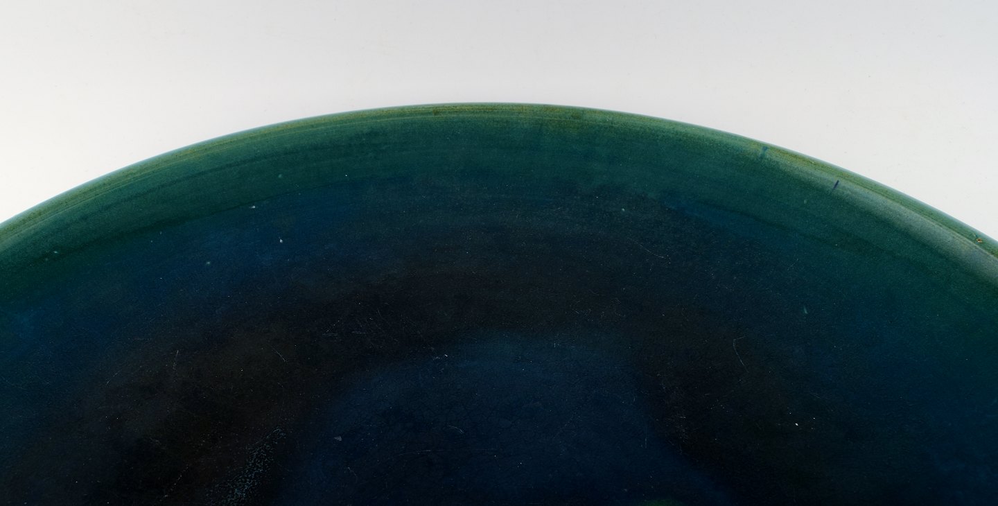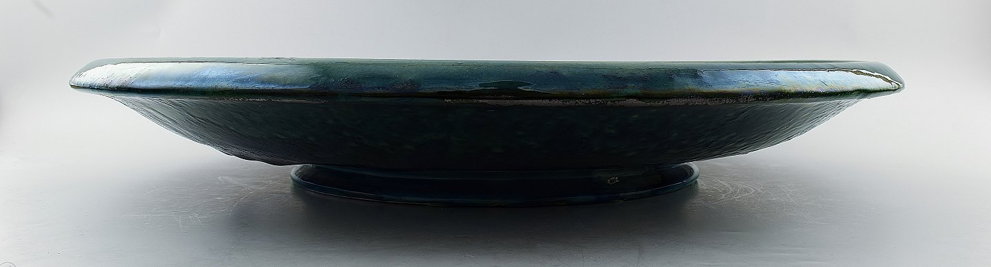 Kähler, Denmark, colossal glazed Stoneware dish, 1940 / 50s. Petrol Blue glaze. 51 cm long. 8 cm. high. Stamped. In perfect condition.