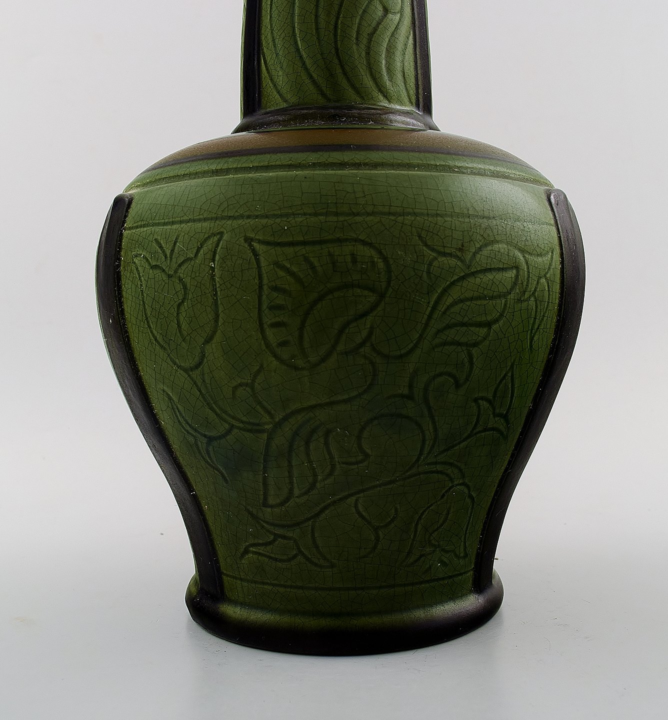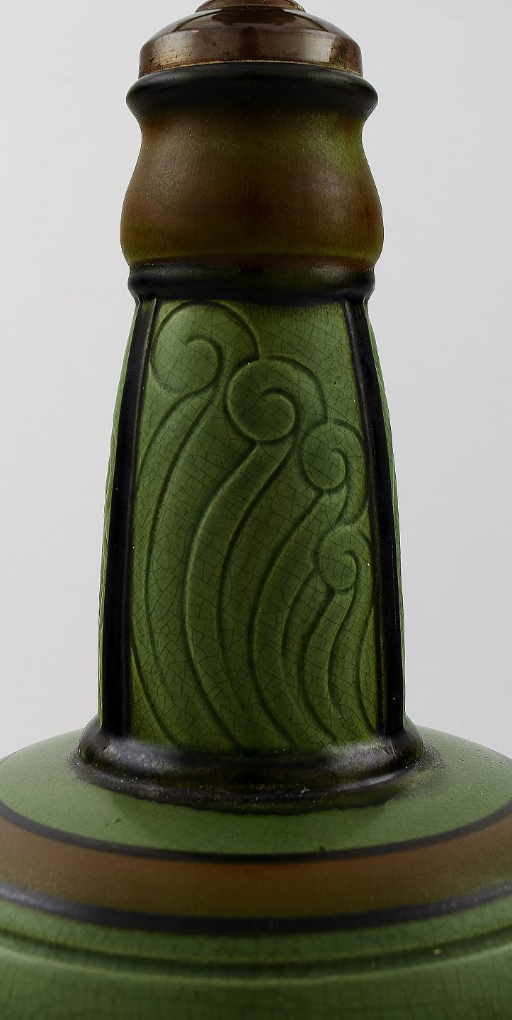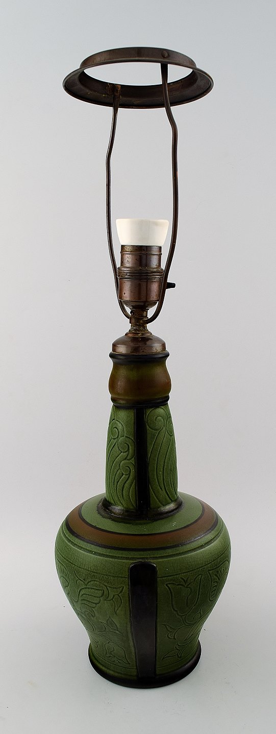 Ipsen's widow, Denmark art nouveau art pottery lamp, art nouveau ornamentation. Early 20 c. Measures 30 x 15 cm. Total height 51 cm. In good condition. Stamped. Model number 836.