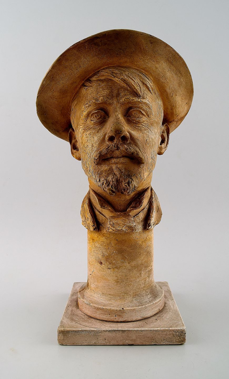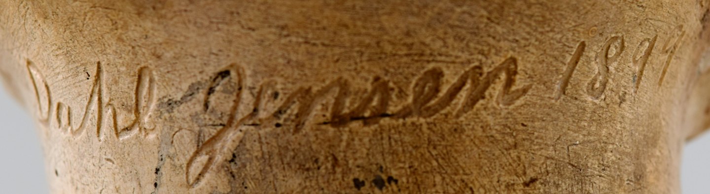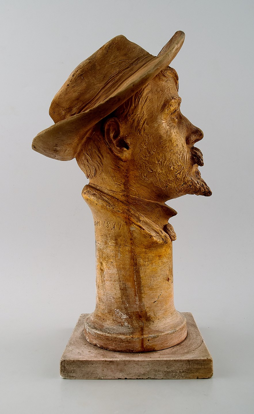 Unika Dahl Jensen buste i terracotta/lertøj af P. S. Kröyer. Måler : 29 x 17 cm. I god stand, brændingsfejl/revne fra produktionen. Dateret 1899. Stemplet.