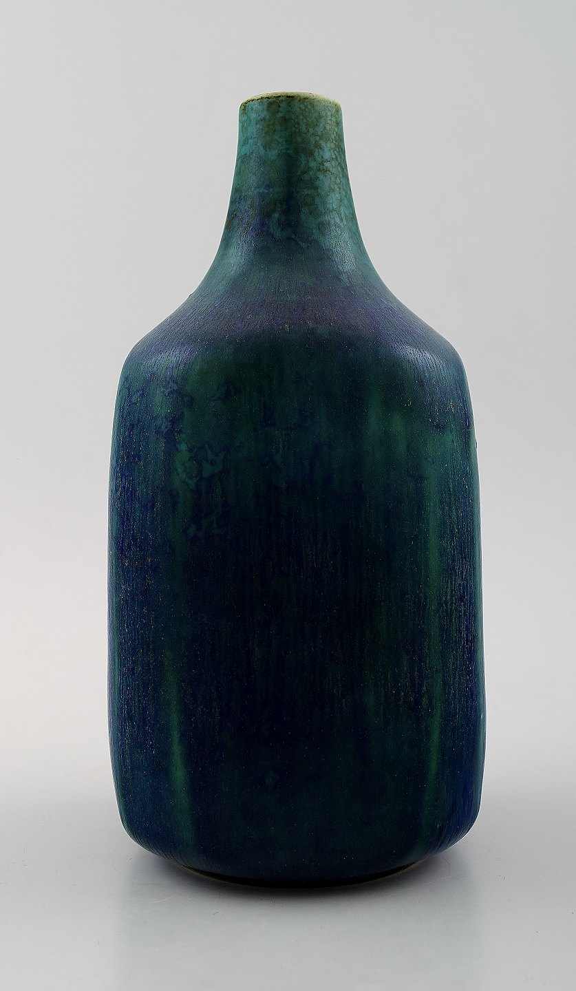 Eva Staehr Nielsen Saxbo, pottery vase in modern design. Beautiful glaze in blue and green tones. Marked. Modelnumber 278. Size: 19 cm. In perfect condition.