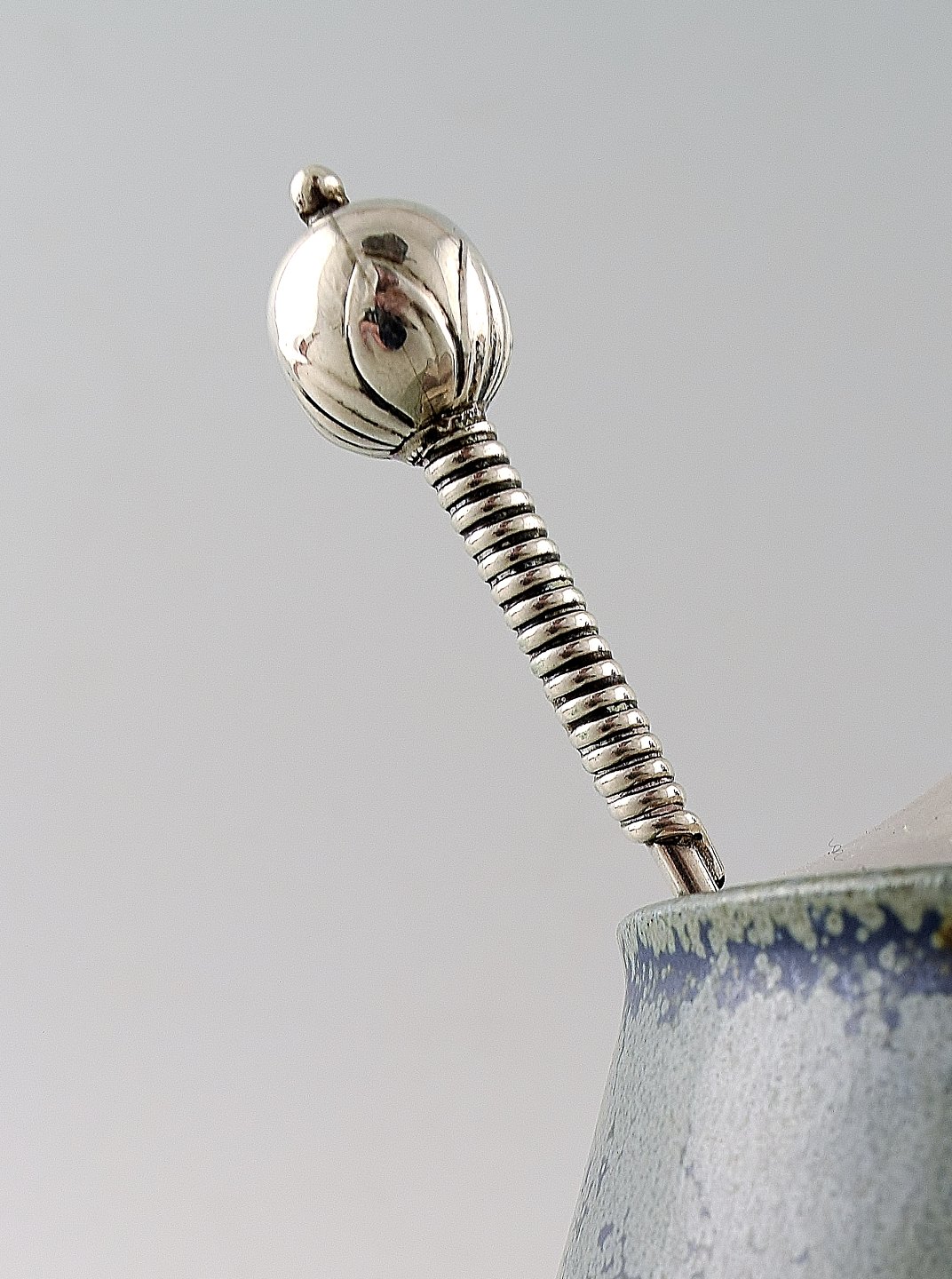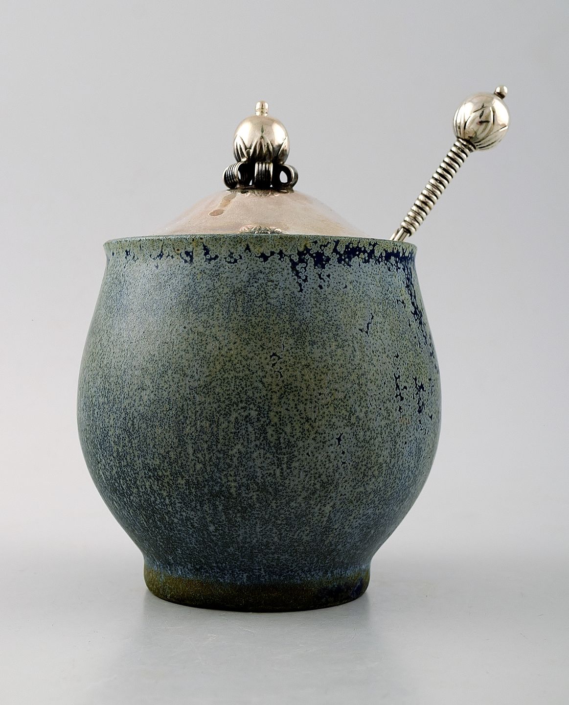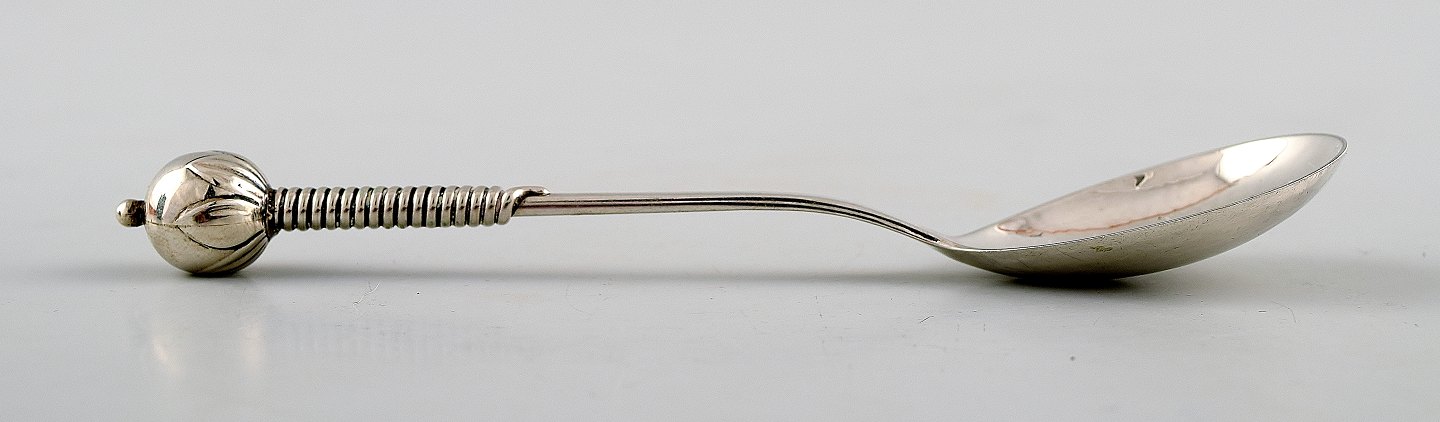 Lid and spoon in sterling silver.