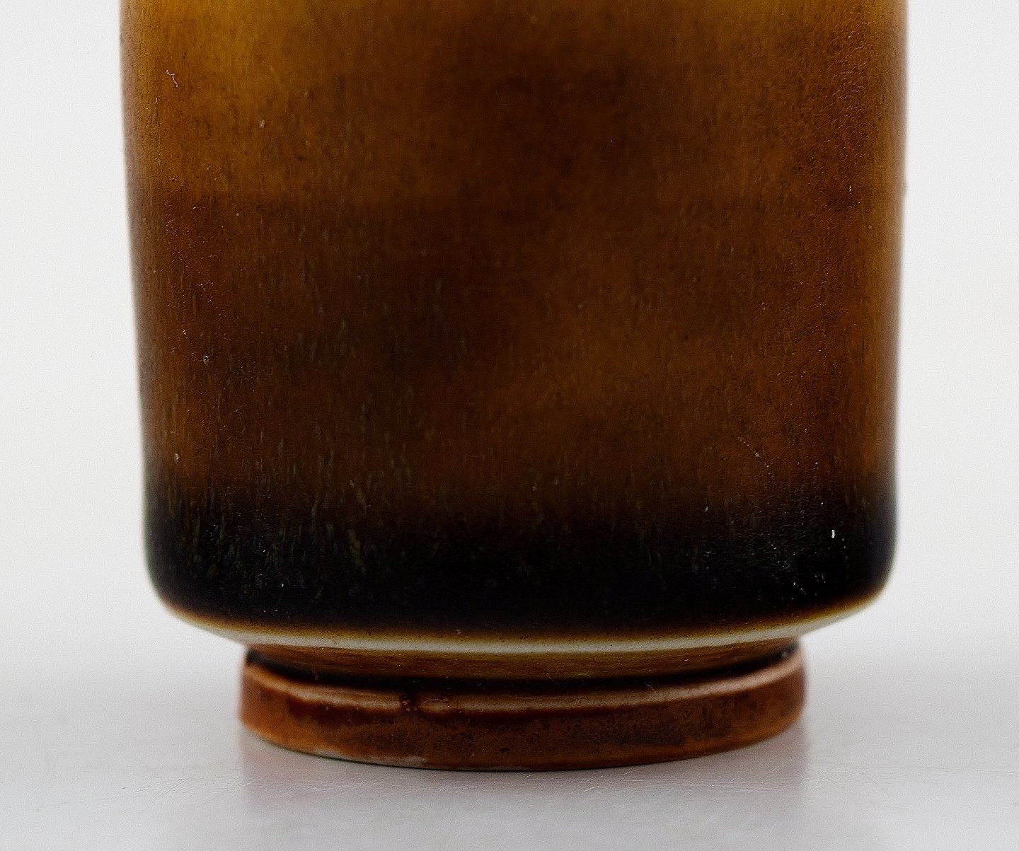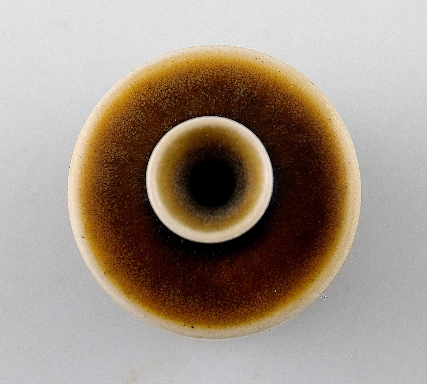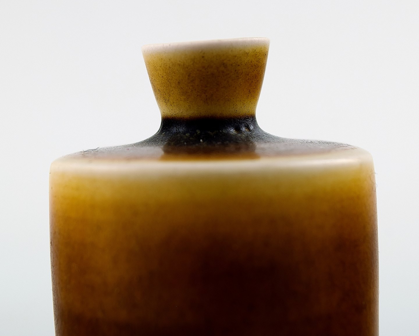 Berndt Friberg Studio keramik vase. Moderne svensk design. Unika, håndlavet. Fantastisk glasur i brune nuancer! Perfekt. 1. sortering. Signeret. Dateret "E" = 1963. Måler : 5,5 x 4,5 cm.