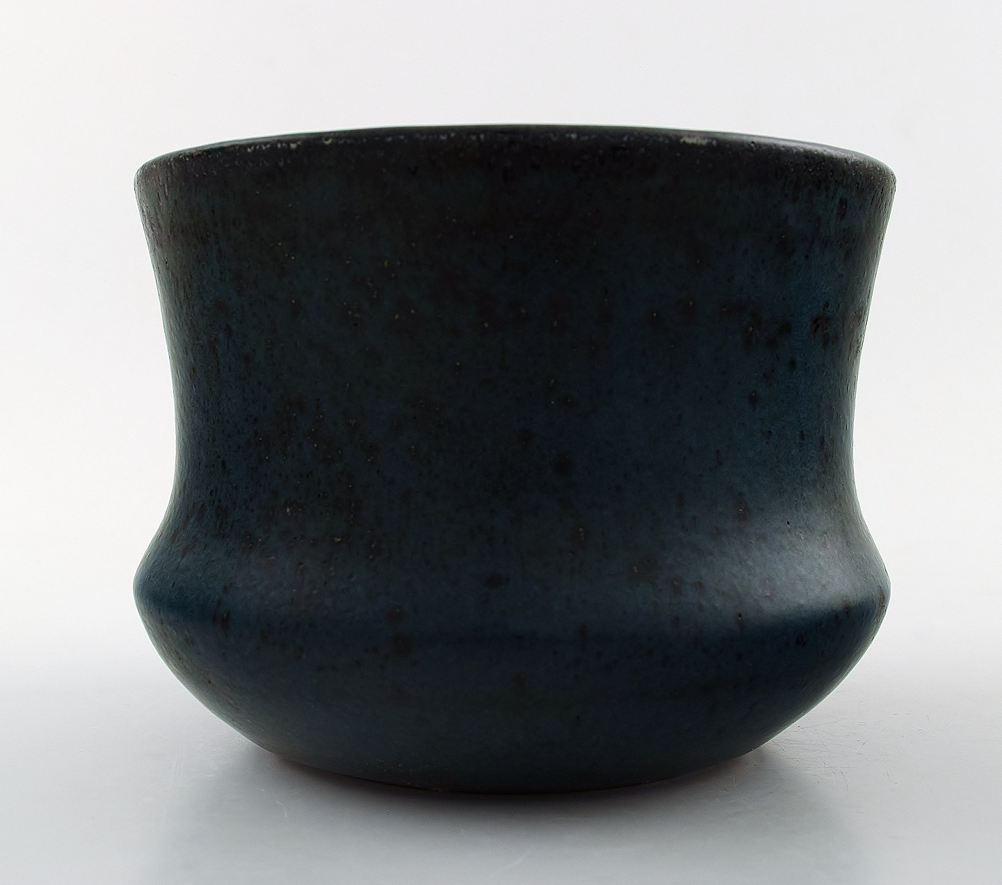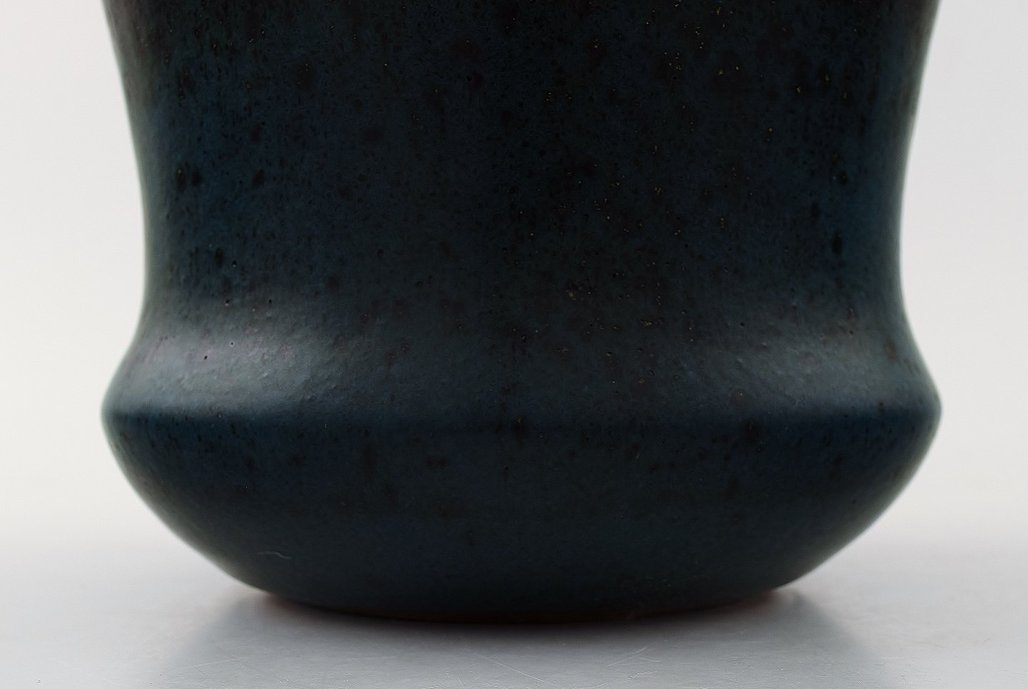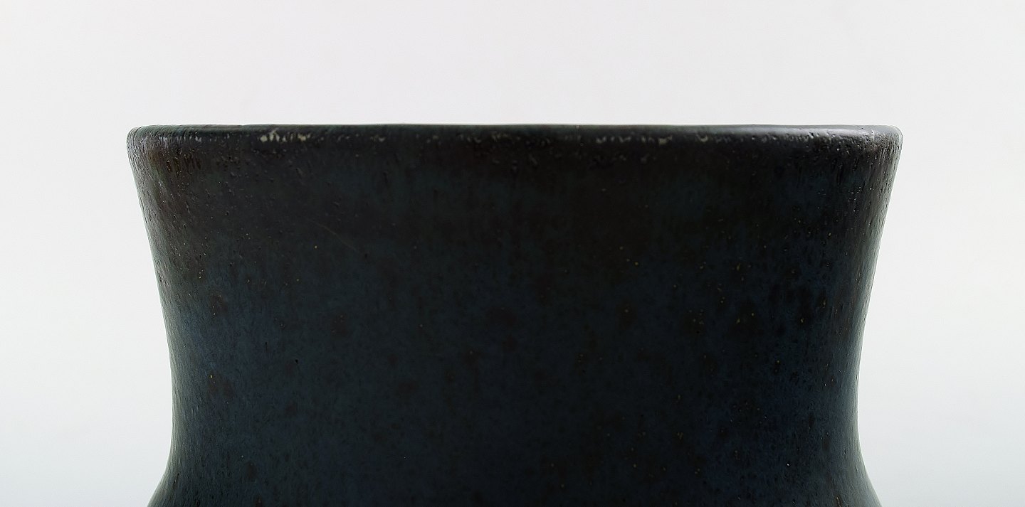 Carl-Harry Stålhane for Rørstrand Atejle, keramik vase. Blå glasur. Måler 15,5 x 11,5 cm. I perfekt stand.
