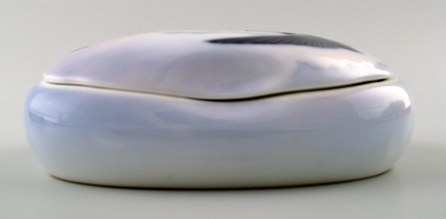 Sjælden Royal Copenhagen Art Nouveau lågskål med svaner #23/10.