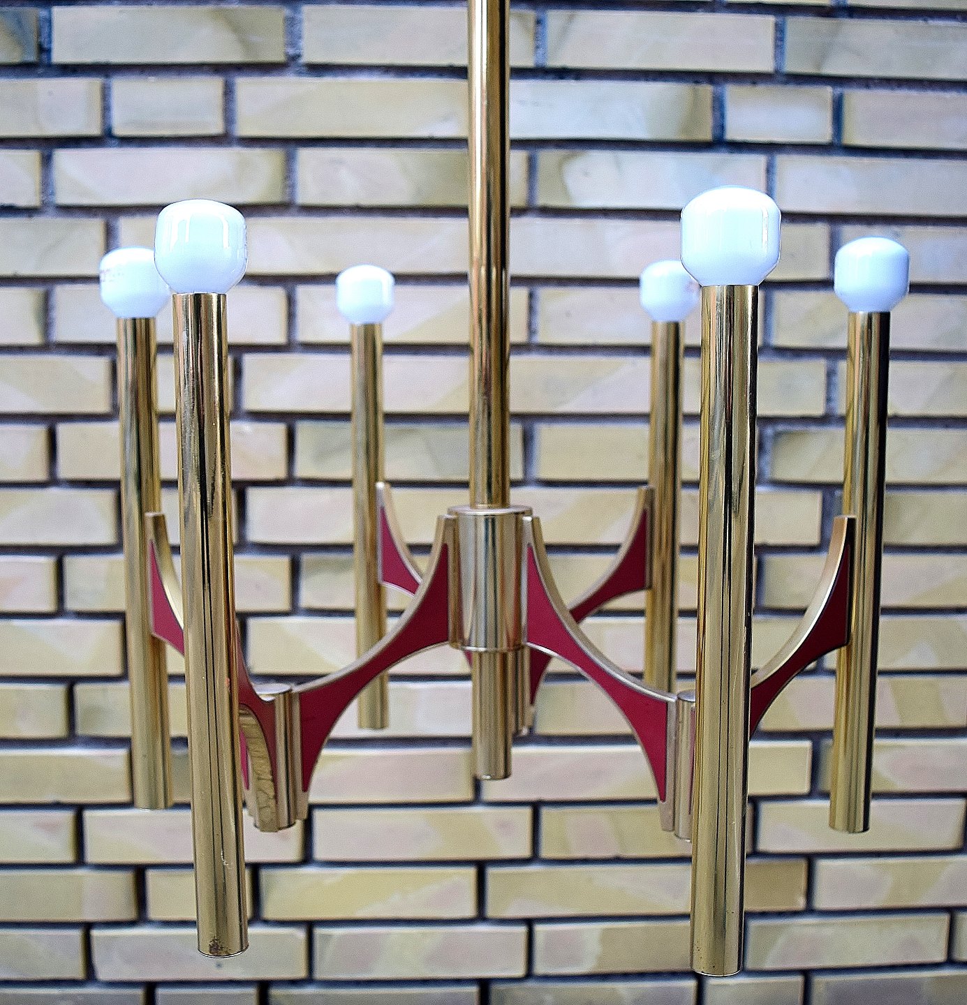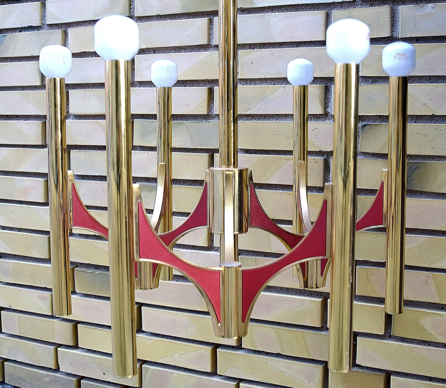 Gaetano Sciolari : Forgyldt messing loftslampe, Italien, 1960/70´erne. I perfekt stand. Måler: 51 x 69 cm.