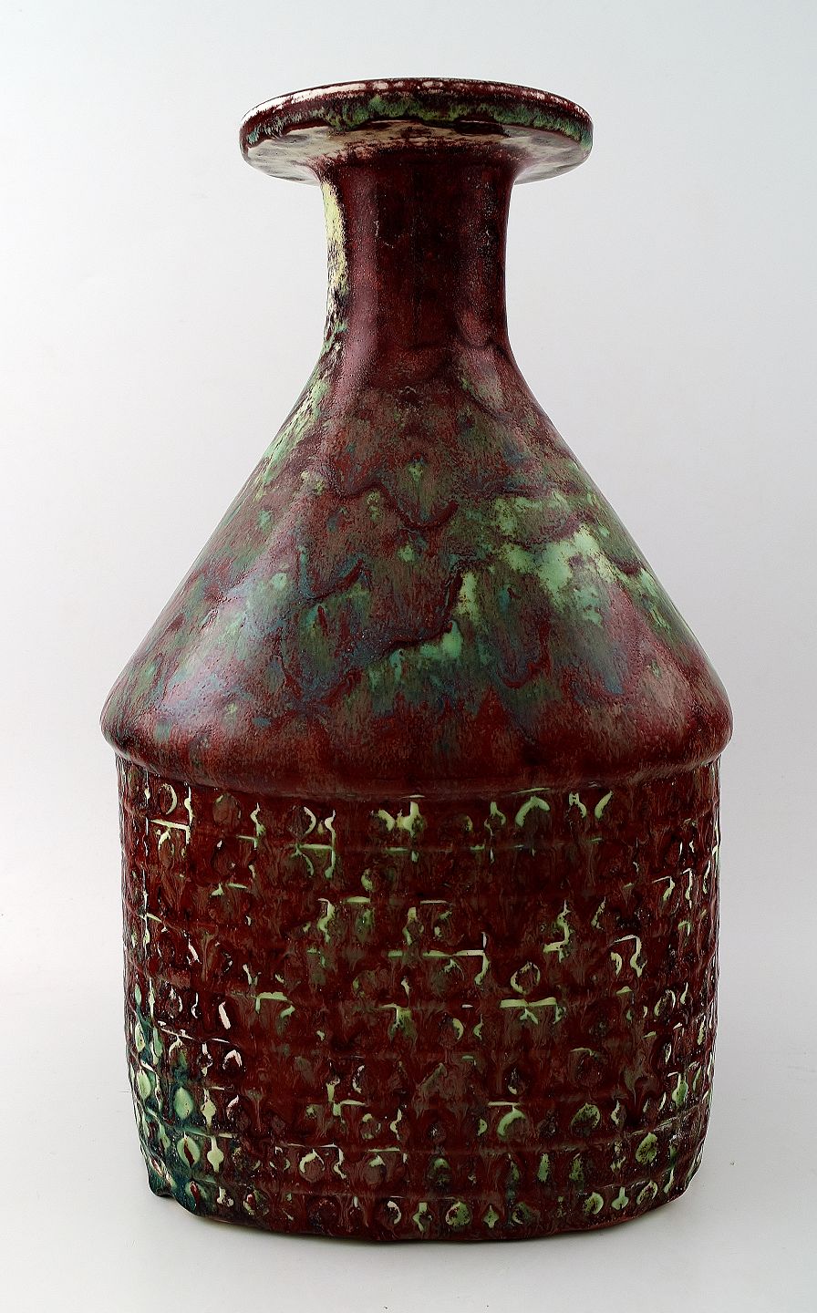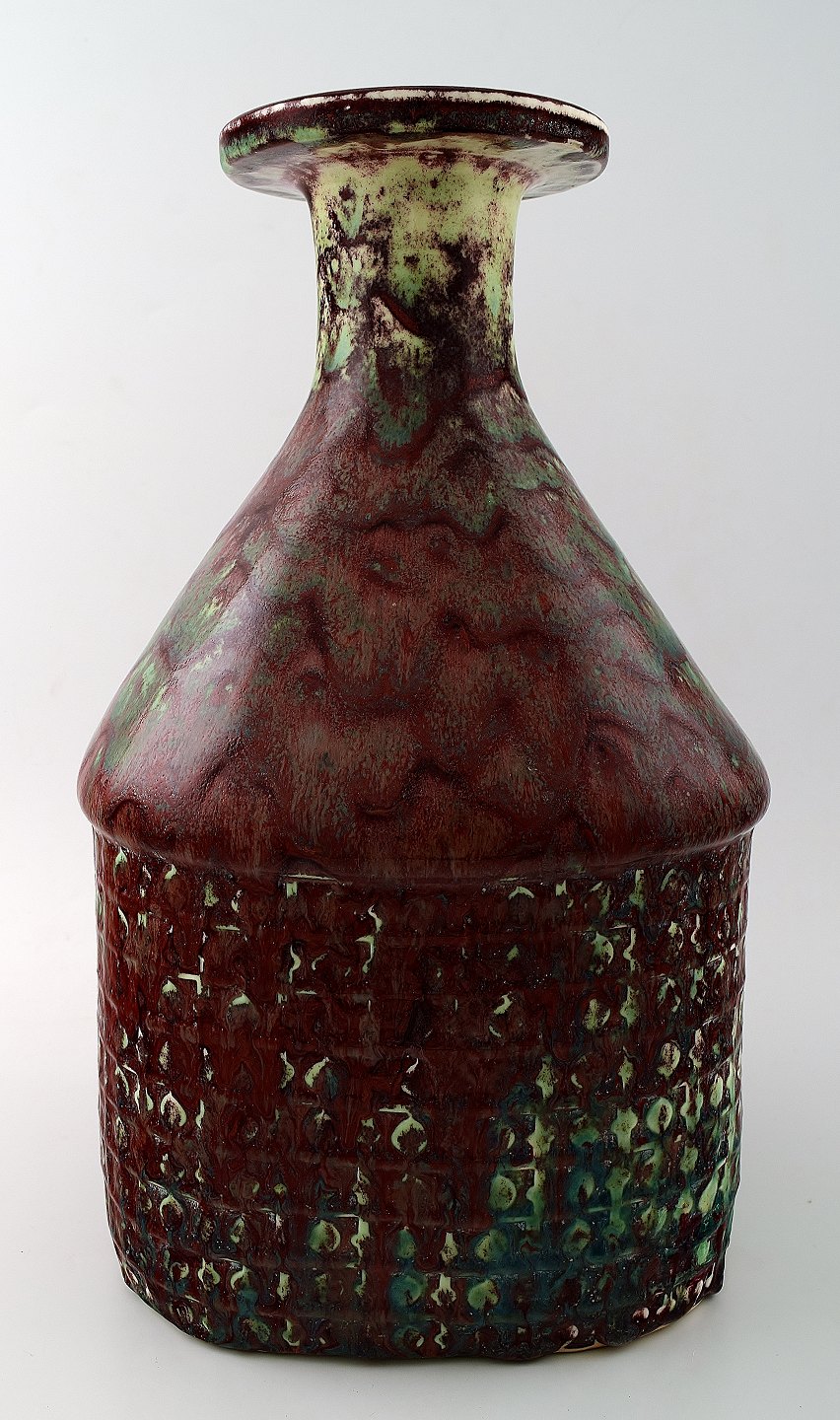 Large Stig Lindberg (1916-1982), Gustavsberg Studio art pottery vase. Aniara glaze, 1960s. Stamped with Studio Hand. Measures 34 cm. x 21 cm. In perfect condition.