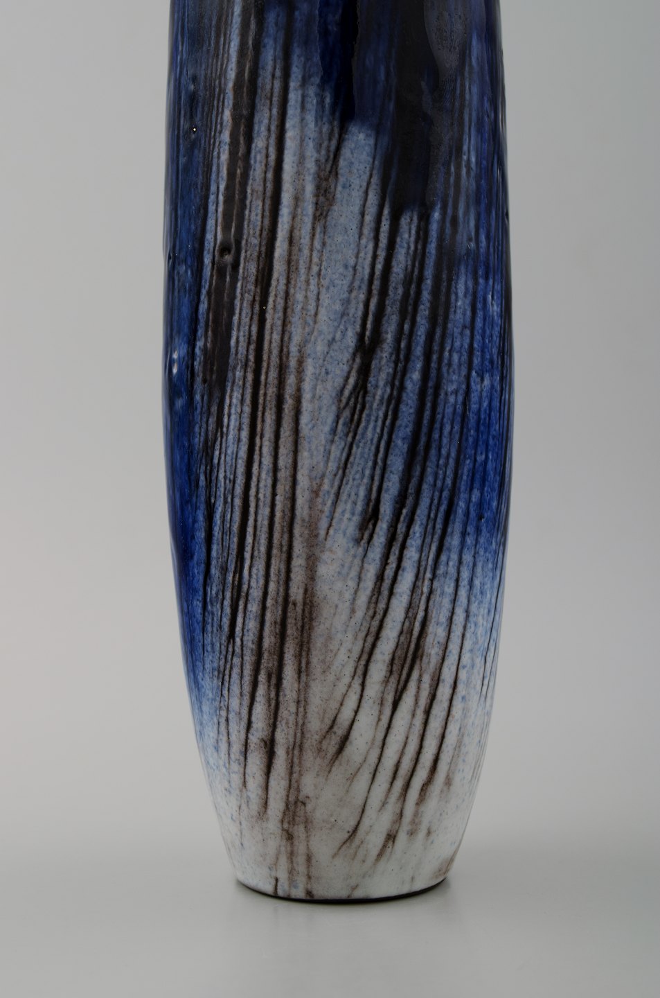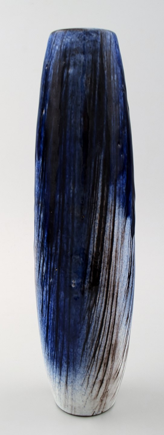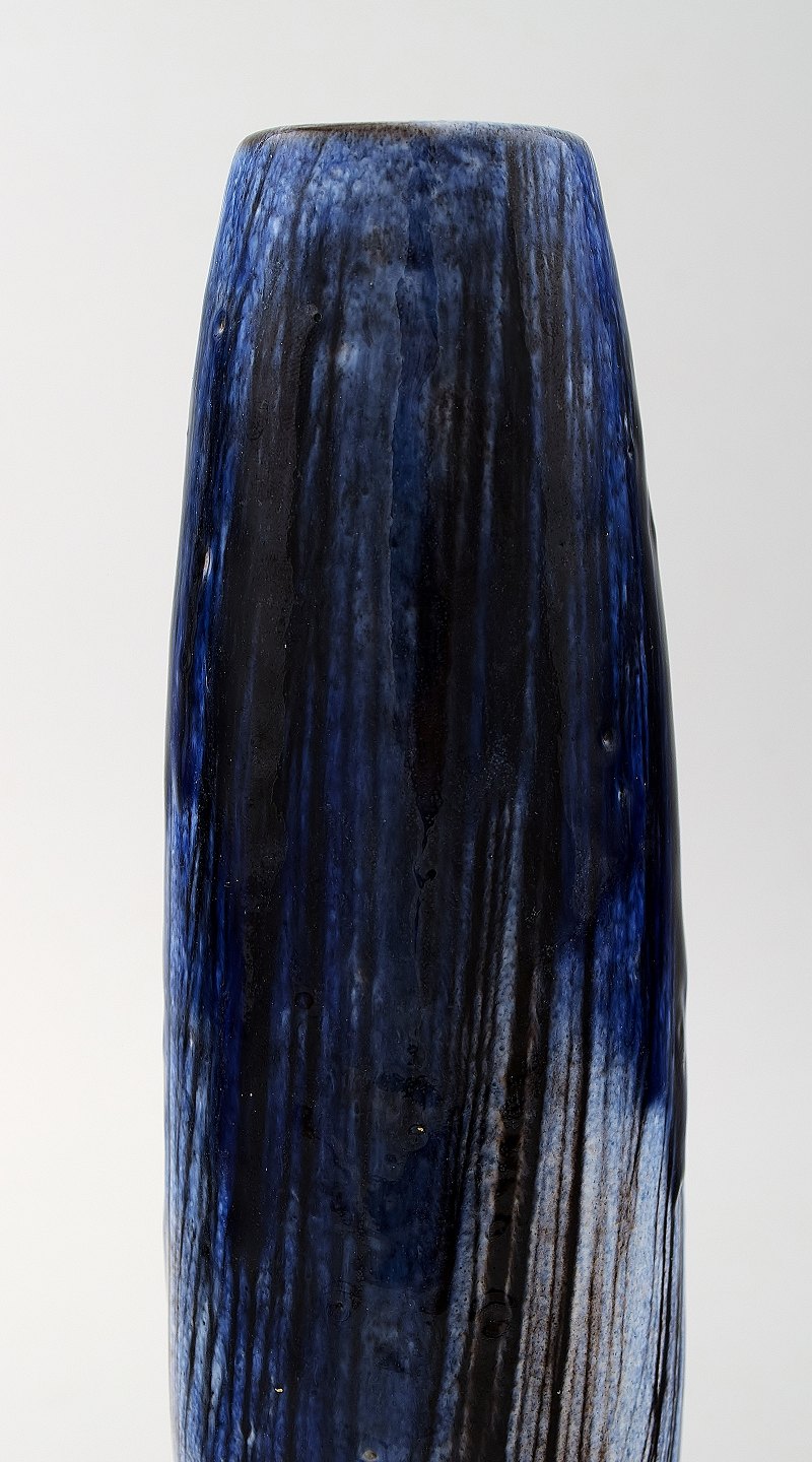 Mari Simmulson for Upsala-Ekeby smal keramikvase. Smuk glasur i mørkeblå nuancer. I perfekt stand. 1960´erne. Måler 25 x 7 cm. Stemplet.