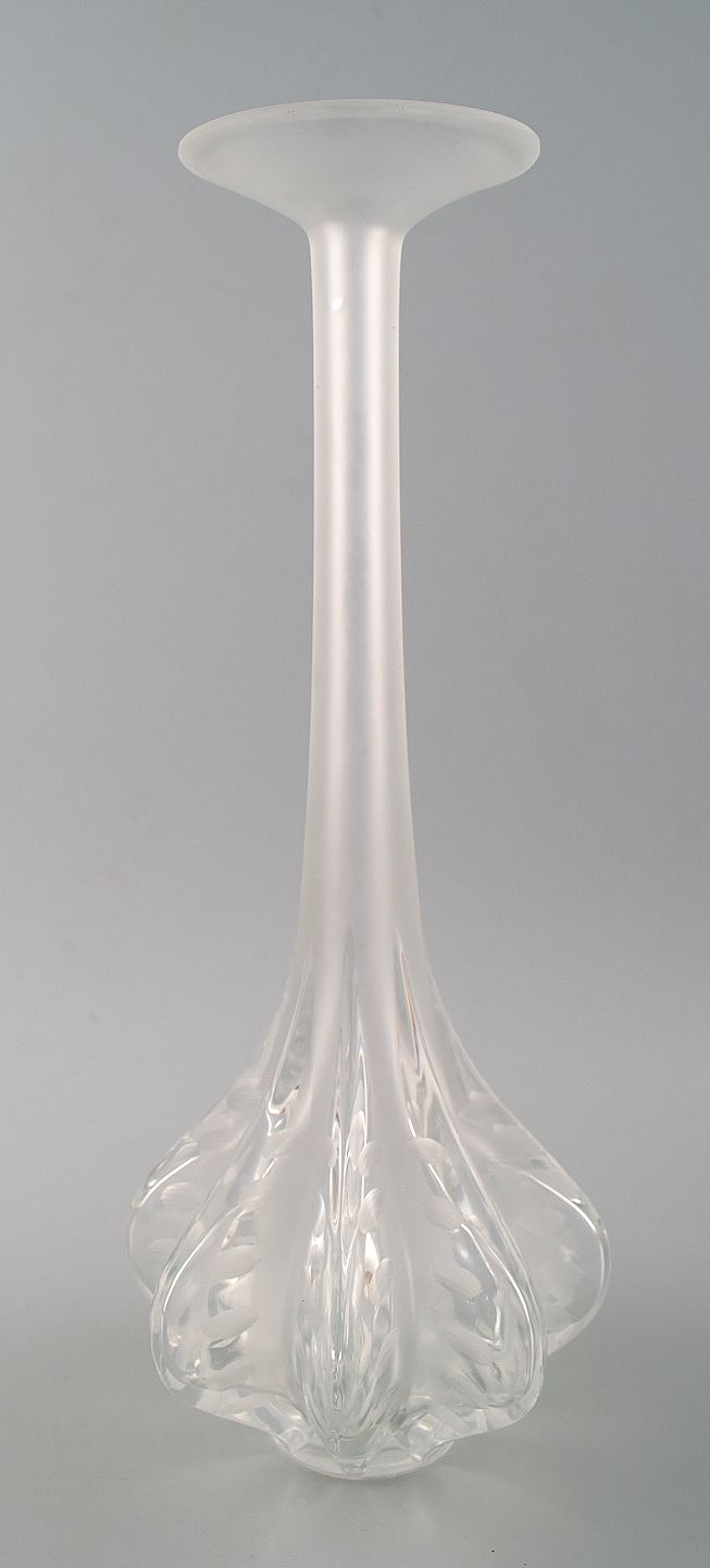 Large Art Deco Lalique art glass vase. Signed: Lalique, France. Size: 34 cm. high. 14 cm. in diameter. In perfect condition. Two pcs in stock