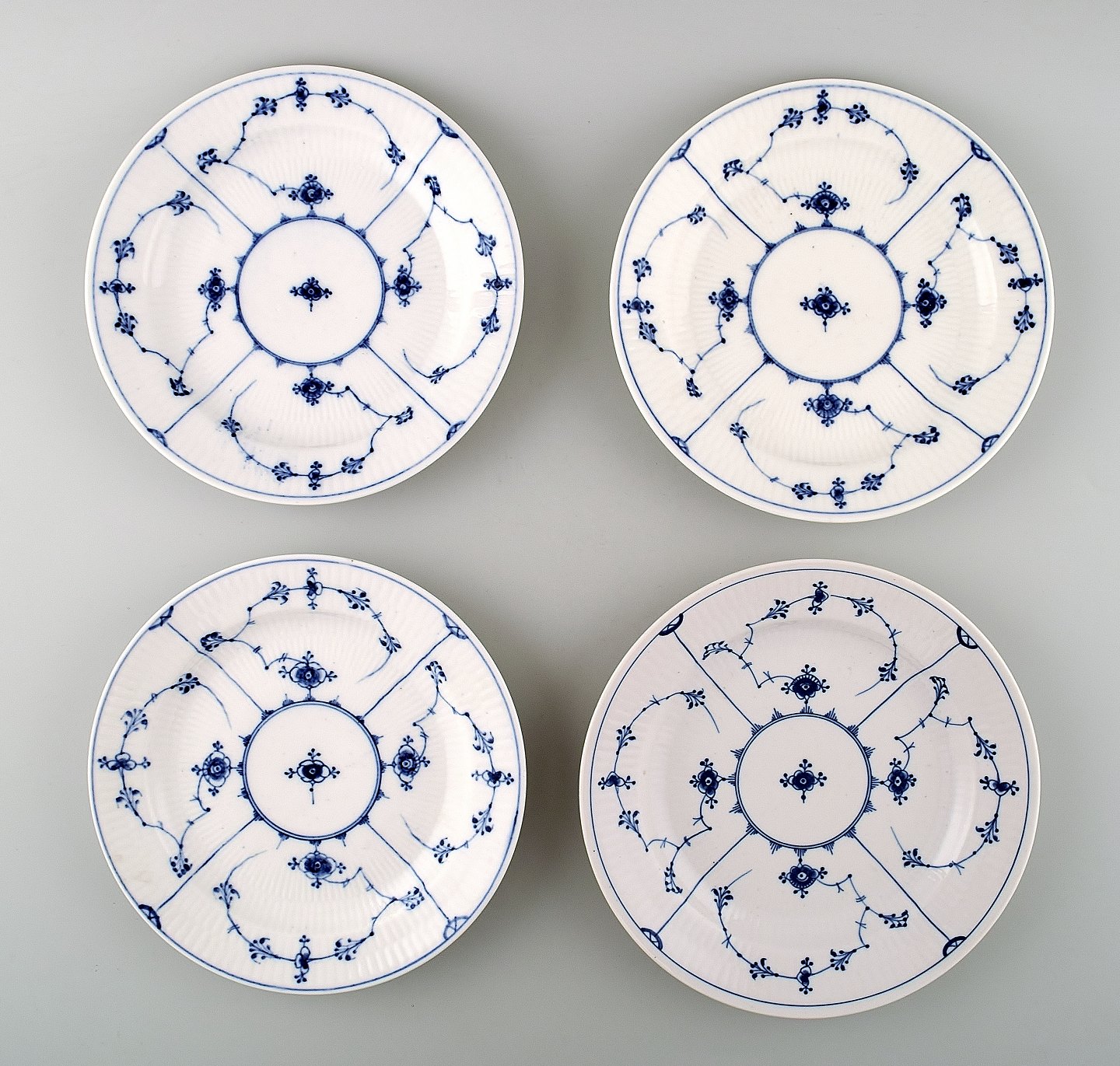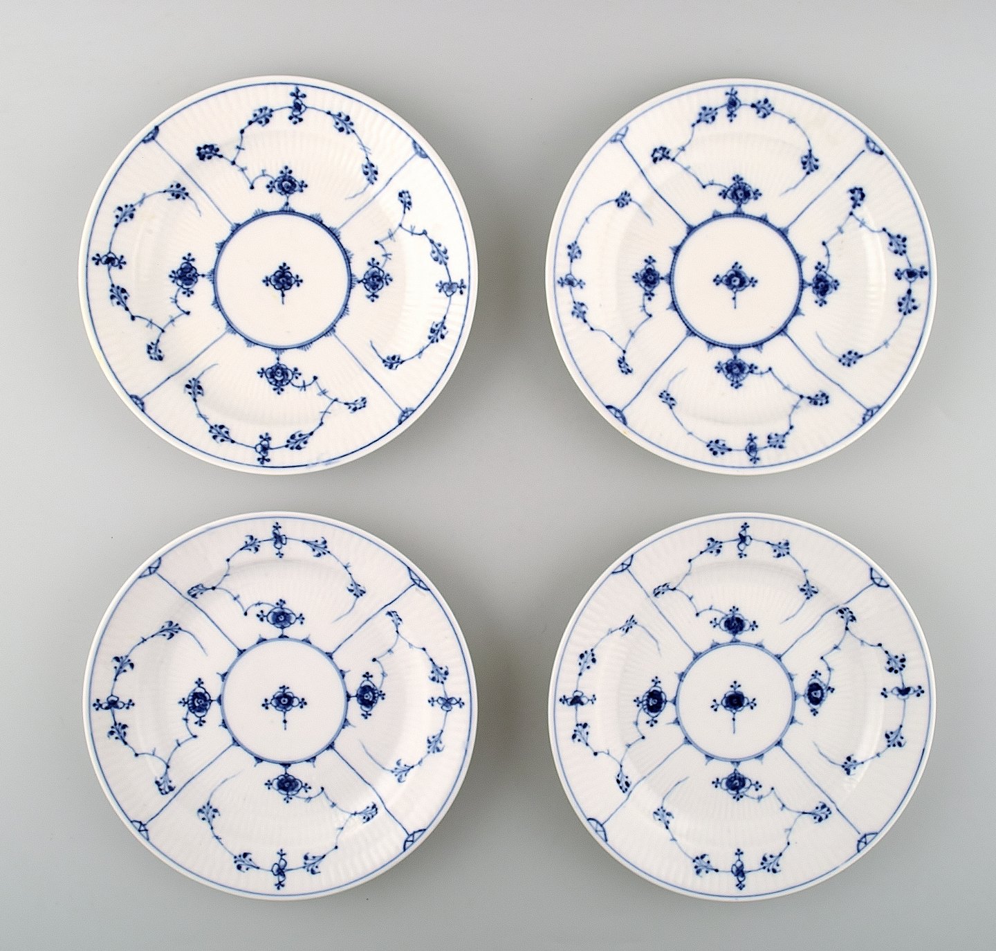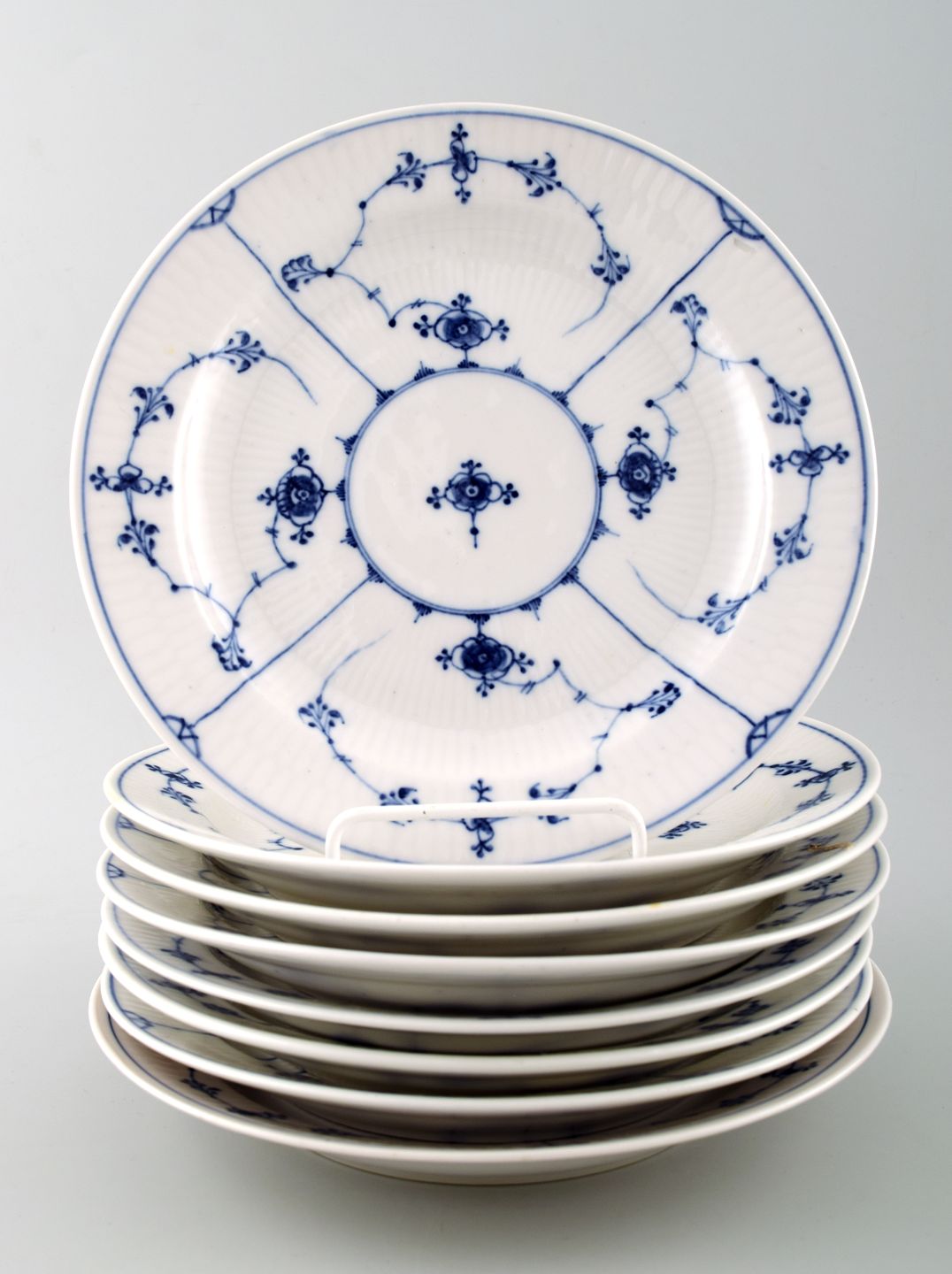 Rare and antique Royal Copenhagen Blue fluted, 8 plates. Early / mid 19 c. Diameter 19.5 cm. Good condition. Factory 1st.