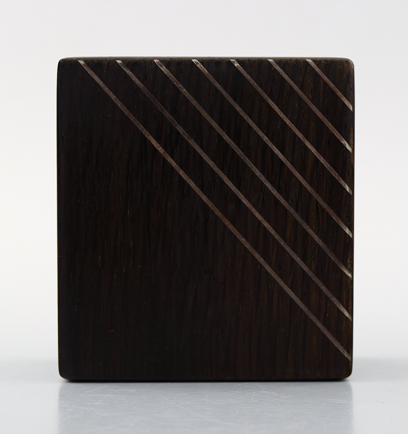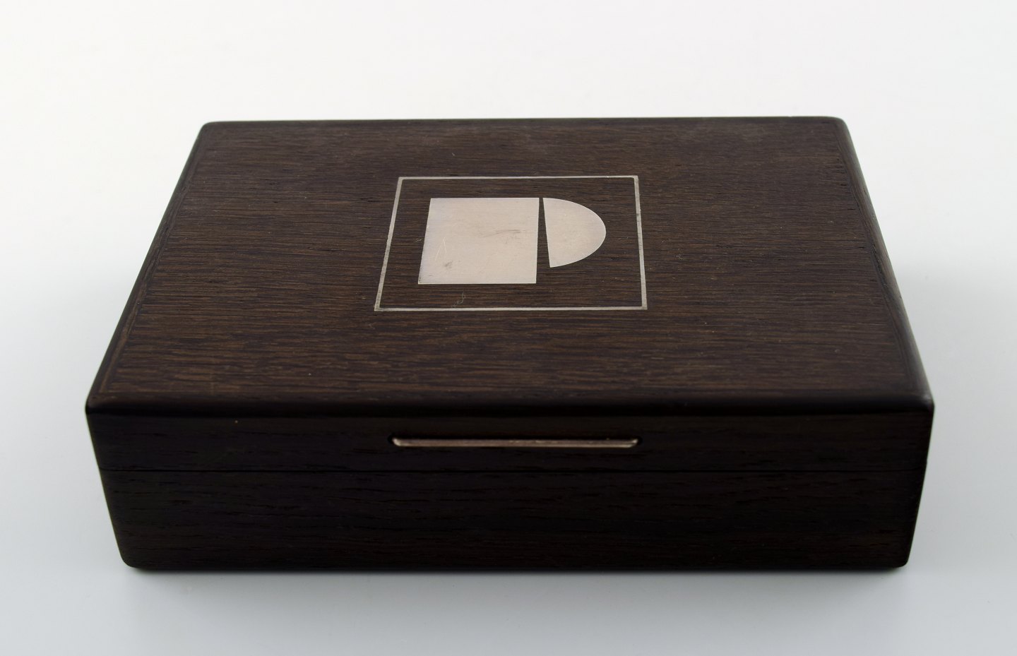 Dansk design, sæt på 6 dele palisander med sølvindlæg. Æske, holdere, notesblok mm. Danmark ca. 1960. I flot stand. Stemplet. Æsken måler 14,5 cm. x 10,5 cm. x 4 cm.