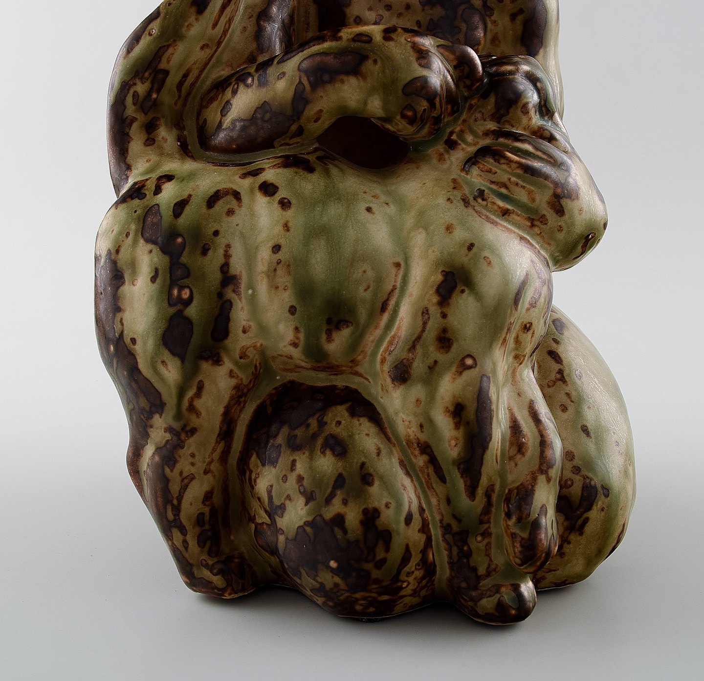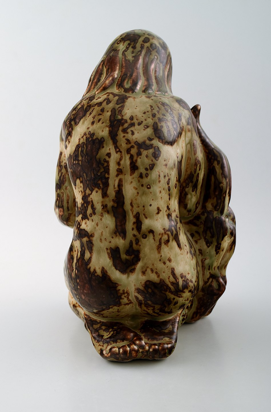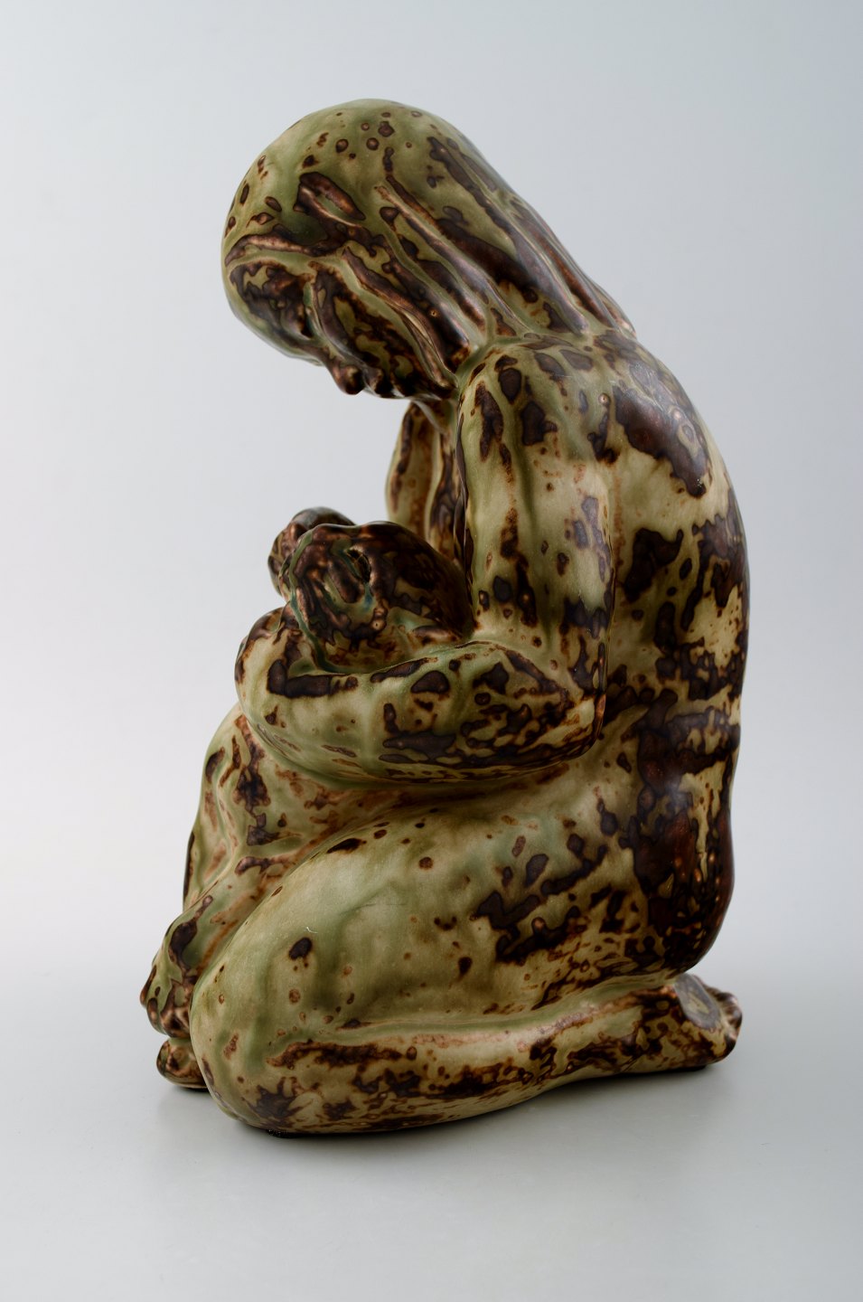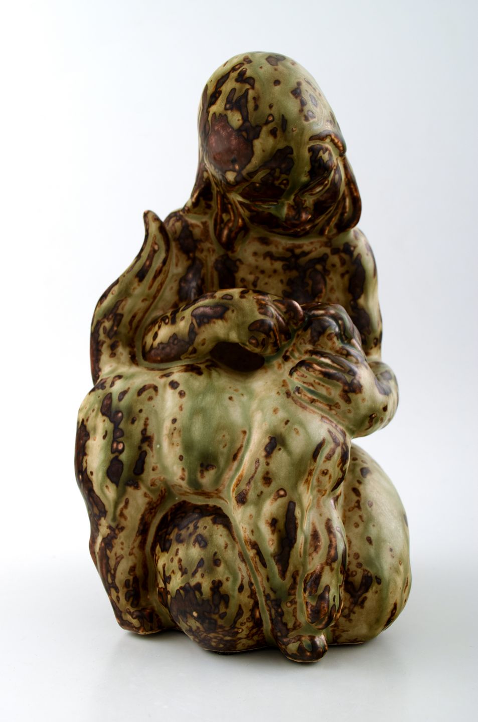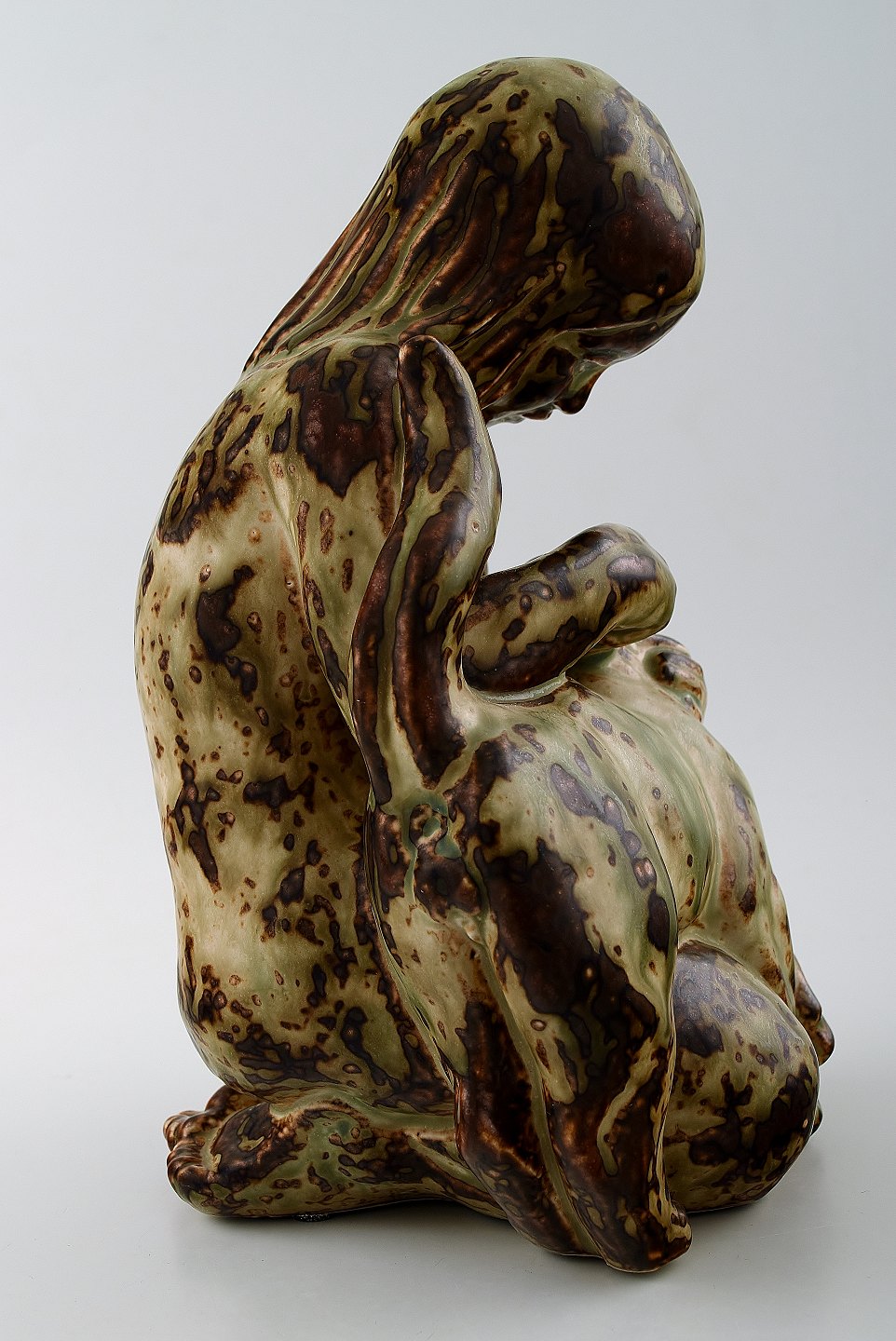 Royal Copenhagen stoneware number 20262 Girl with cat. Measures 24 cm. x 13 cm. In perfect condition. 1st. factory. Designed by Knud Kyhn in 1931.