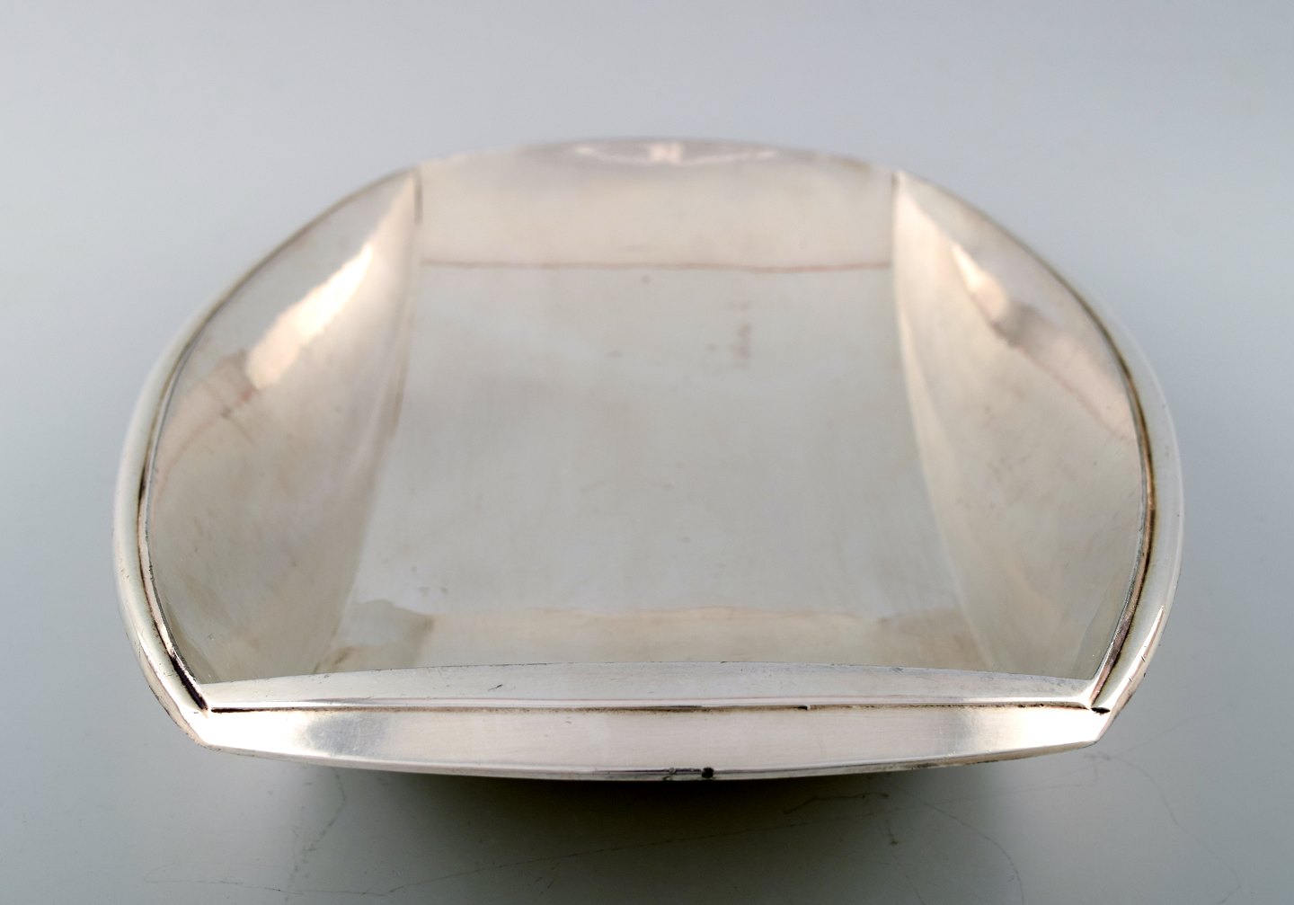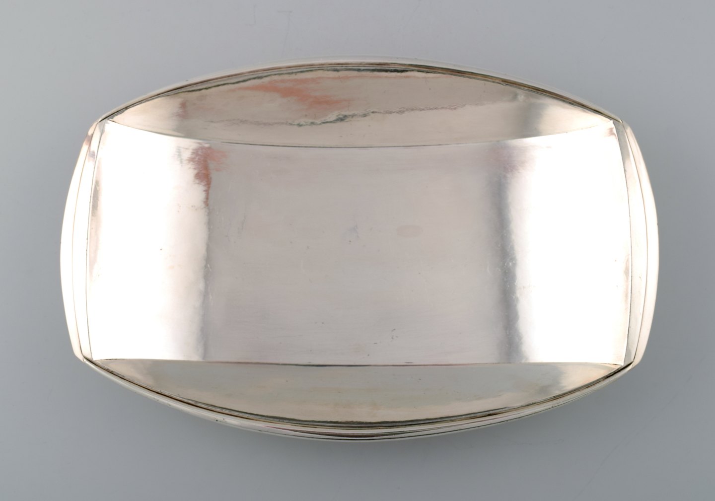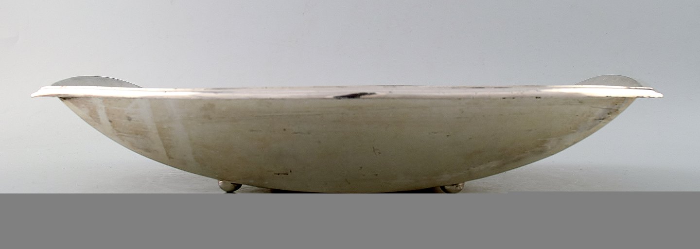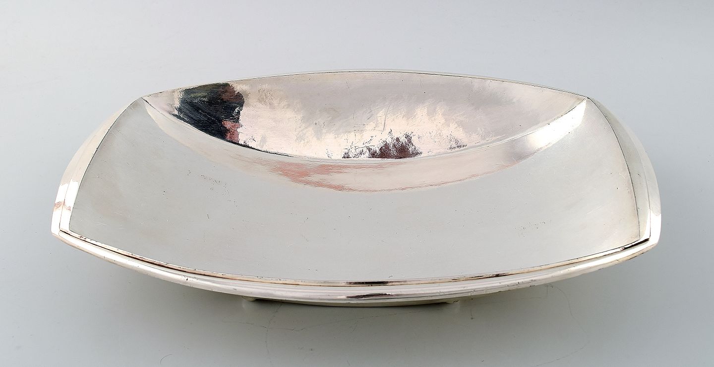 Breadbasket on feet in silver plate designed by Christian Fjerdingstad for Christofle (Gallia). Very good condition. 1930 s. Stamped: "Gallia" Measures: 32 cm. x 20 cm. x 5 cm.