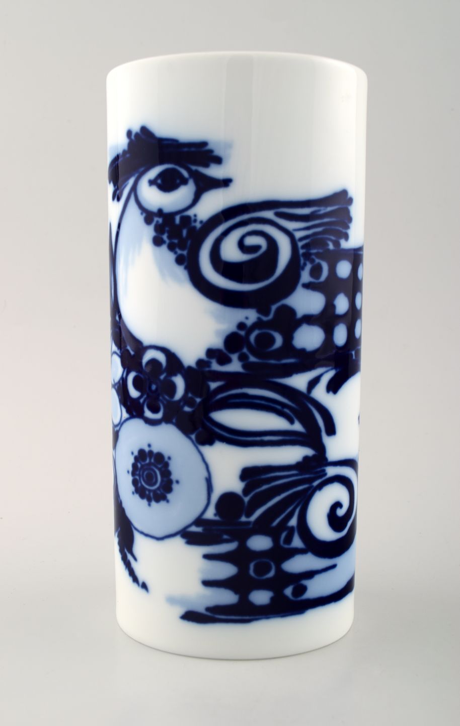 Rosenthal Studio Line, Bjorn Wiinblad porcelain vase, decorated in blue with birds. In perfect condition. Measures 20 x 10 cm. Marked.