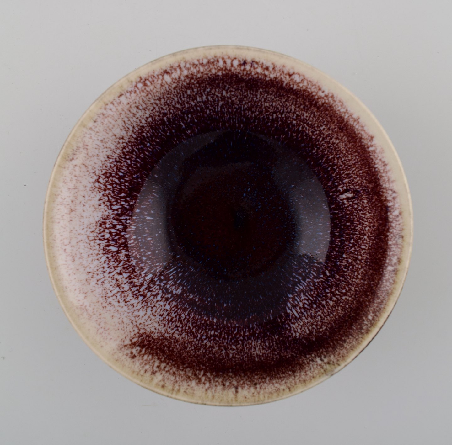 Scandinavian ceramist, art pottery bowl with purple glaze. Signed illegible. Measures: 14.5 cm. x 6 cm. In perfect condition.