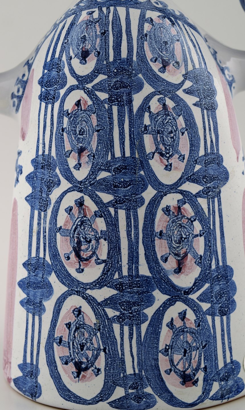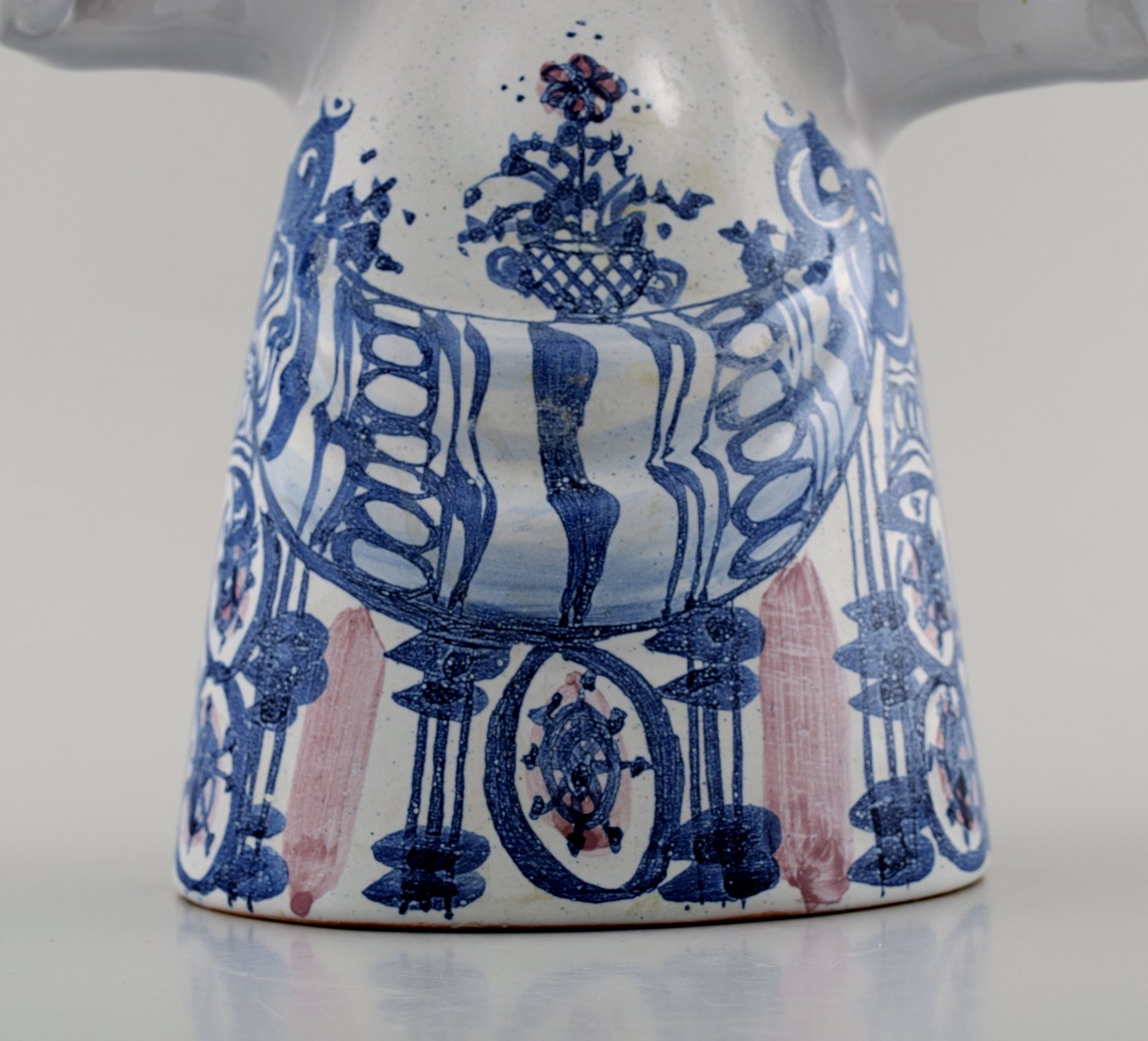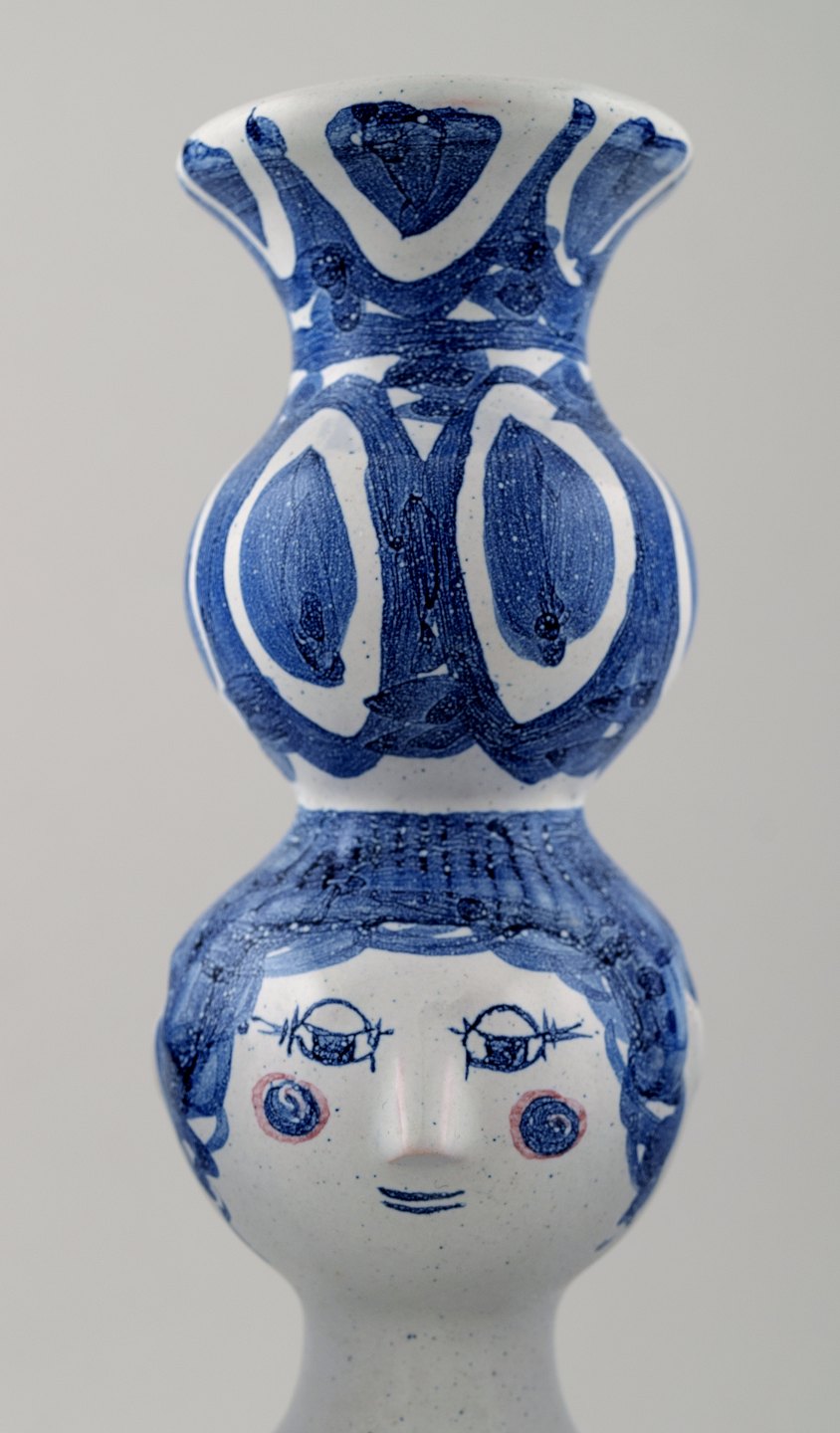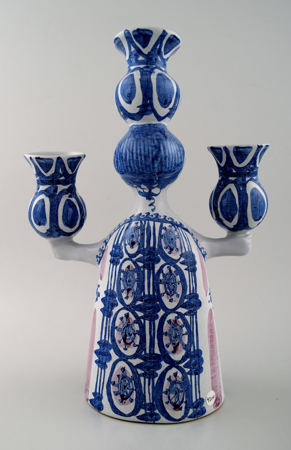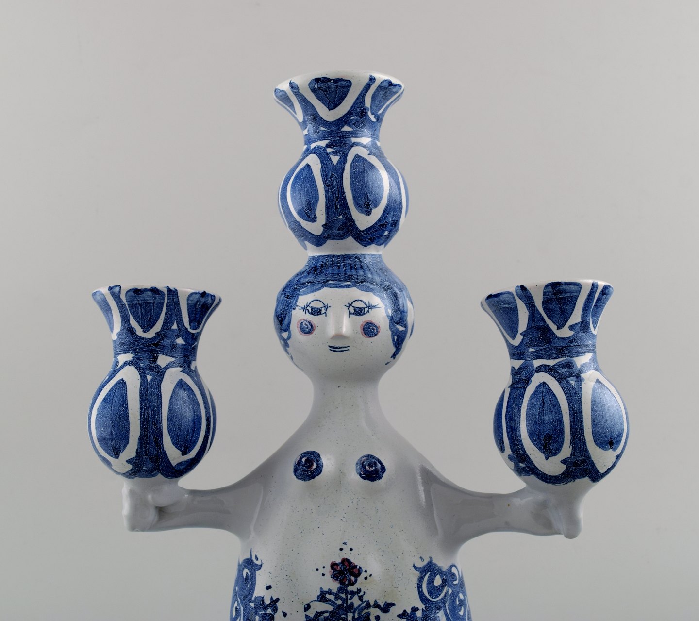 Bjorn Wiinblad, lady, unique three armed candlestick. In perfect condition. Dated 73. Model L 8 Size: 32 cm. high. 22 cm. in diameter.