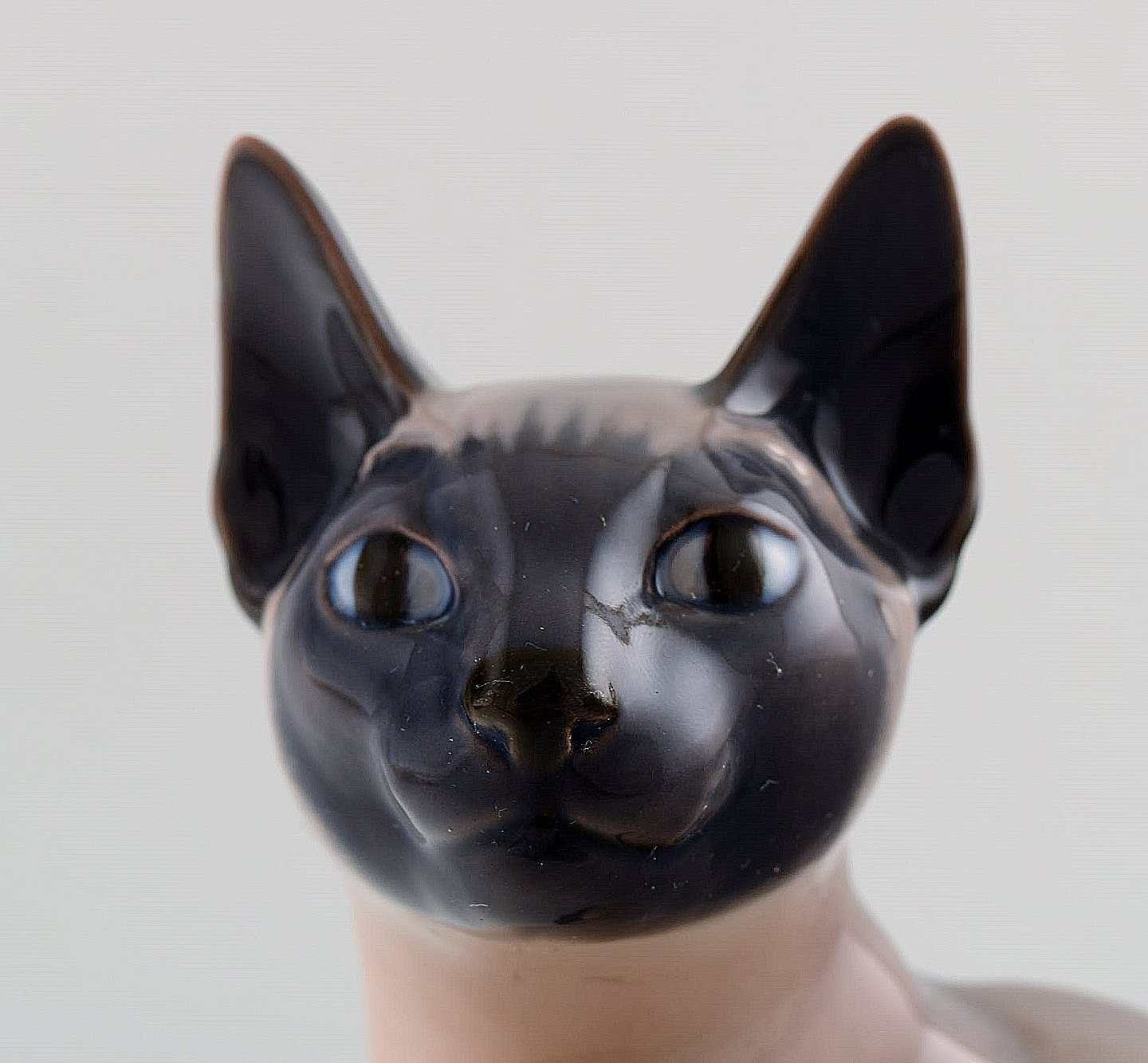 Royal Copenhagen Siamese cat. Number 142. In good condition. Factory 3. Height 19.5 cm.