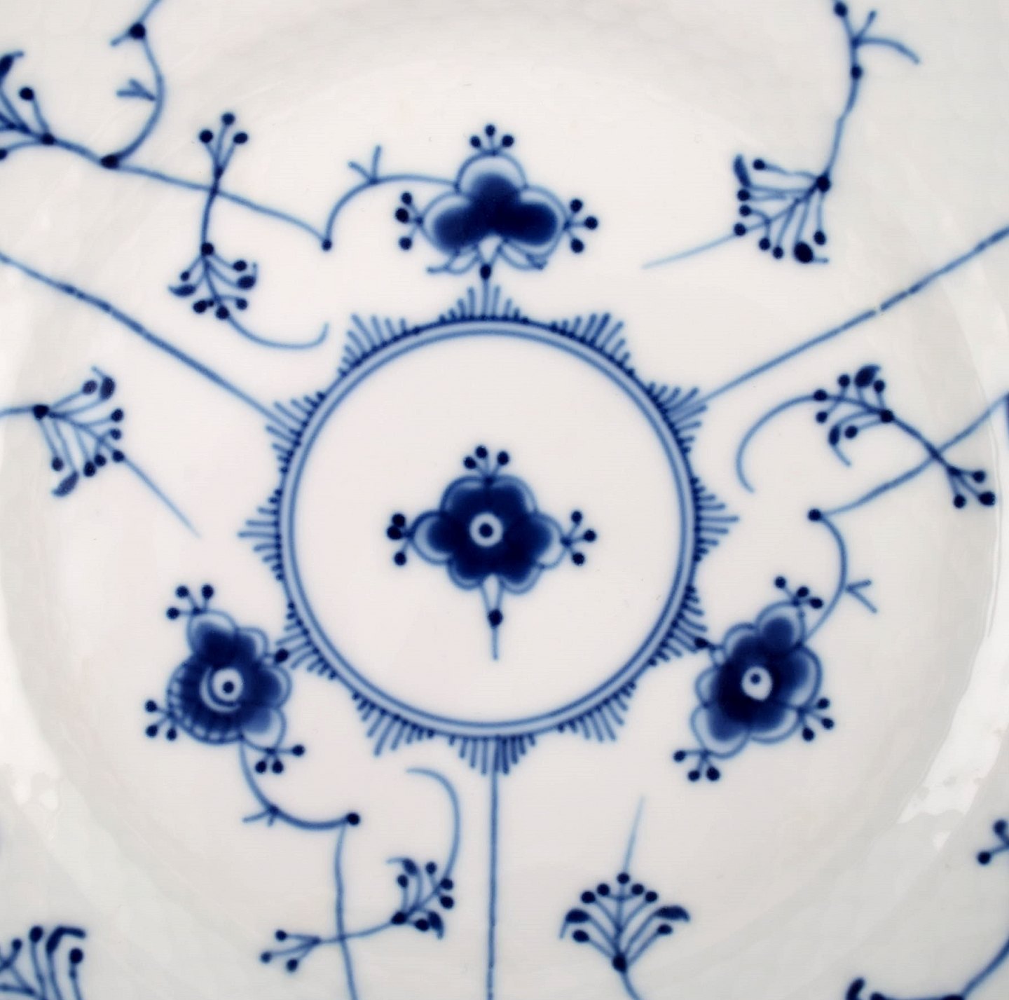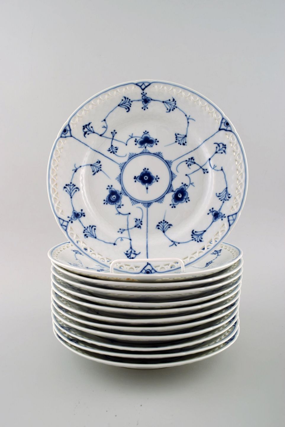 Bing & Grøndahl Musselmalet nr. 326.6. 12 tallerkener med gennembrudt kant. Måler 22 cm. I perfekt stand, 1. sortering. 12 stk på lager.