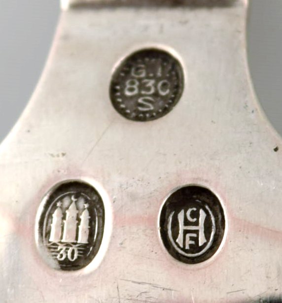 Georg Jensen Pyramide salatsæt i hel sølv. Designet af Harald Nielsen 1933-44. Tidligt stempel. I perfekt stand. Måler 14 cm.