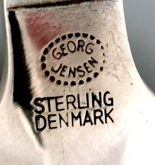 9 stk. Georg Jensen Pyramide dessertske. Designet af Harald Nielsen 1933-44. I perfekt stand. Måler 16,5 cm.