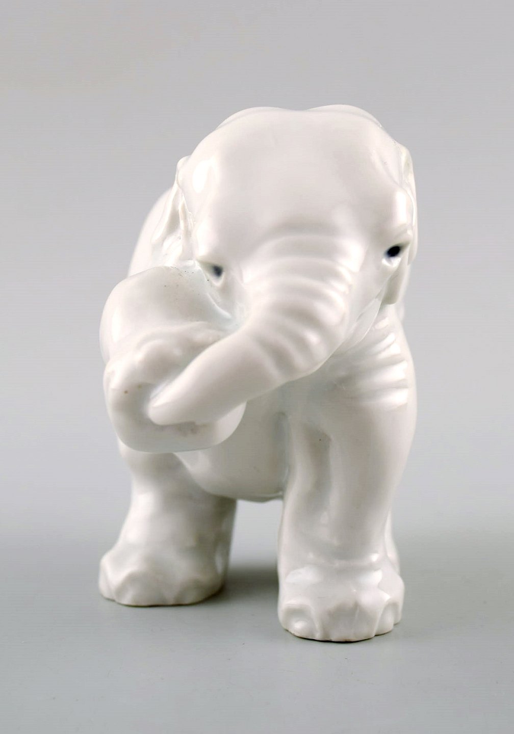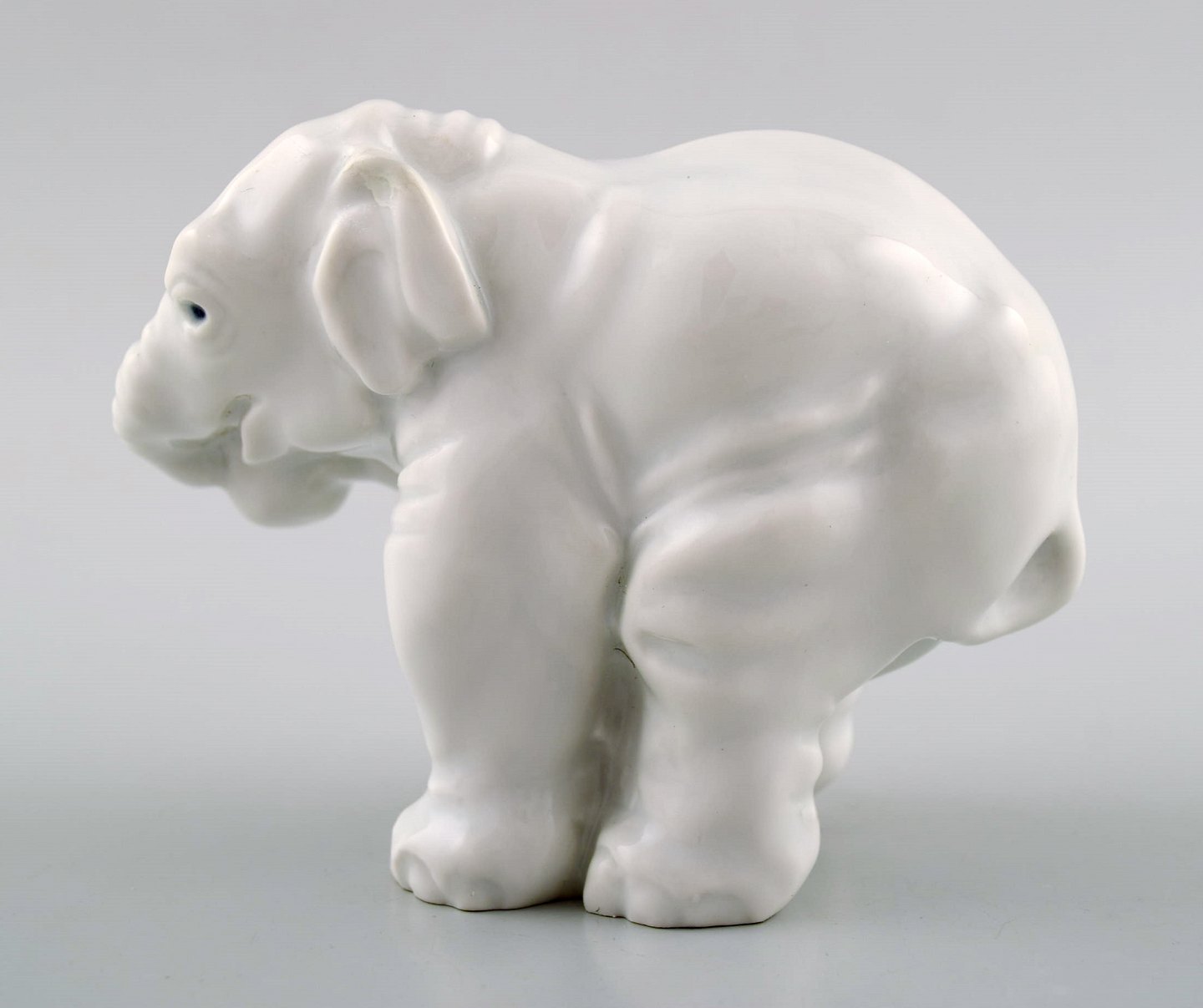 Royal Copenhagen porcelain 22741. Elephant / young elephant. White glaze. Measures 10 x 7.5 cm. In perfect condition. 1st. factory quality. Early stamp, Cirka 1920.