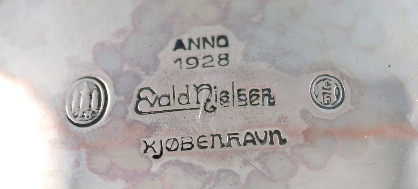 Evald Nielsen, Art deco sølvskål. Måler : 8 cm. x 3 cm. Stemplet. EN 1928. I god stand. Vægt 77 g.
