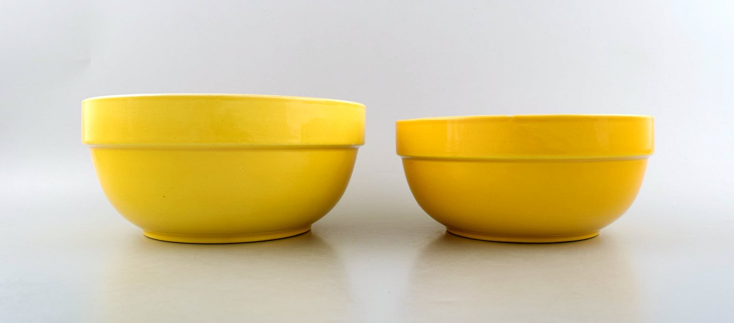 4 bowls, Susanne Yellow Confetti Royal Copenhagen / Aluminia. Measures: Largest: 22 cm. x 10 cm. Smallest 15 x 7 cm. In very good condition. 1st. factory quality.