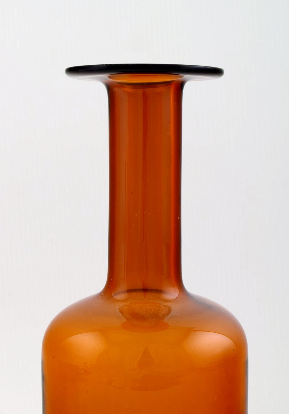 Holmegaard flaske, Otto Brauer. Flaske i brunt. Usigneret. Måler : 26 cm. x 10 cm. I perfekt stand.