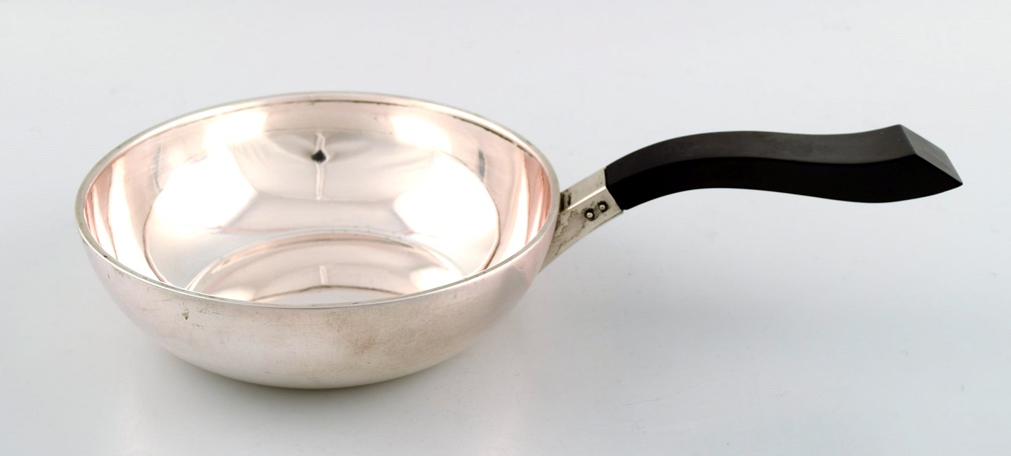 Jens Sigsgaard, sølvkasserolle. I perfekt stand. Stemplet. Måler : 21 cm. Vægt : 299 g.