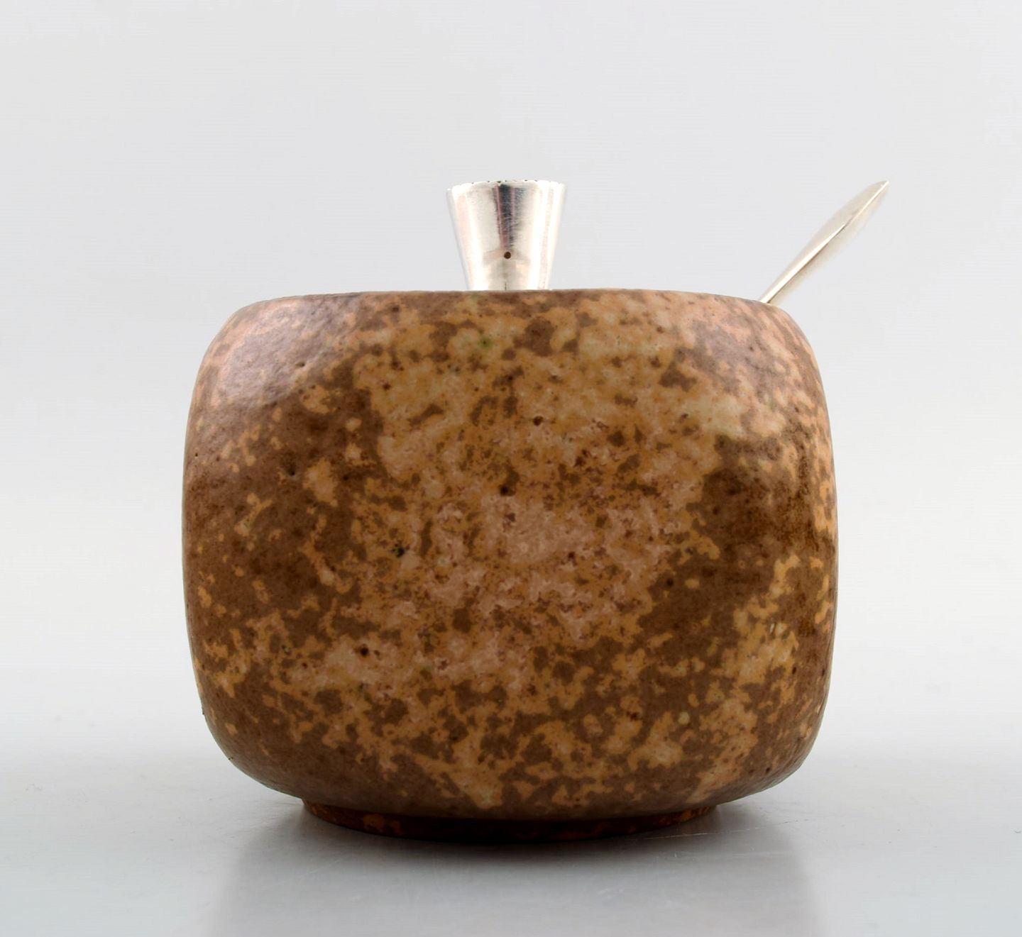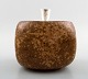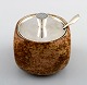 Unika marmeladekrukke af brun glaseret stentøj, prydet med låg