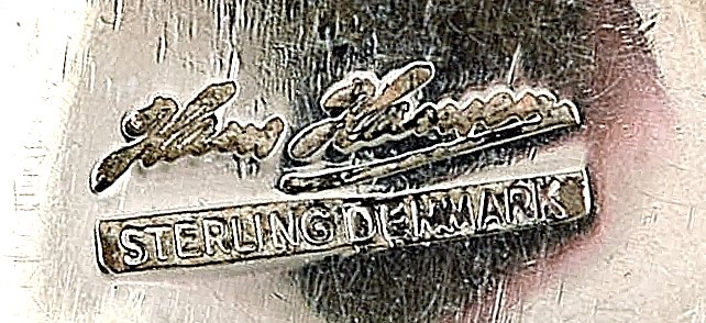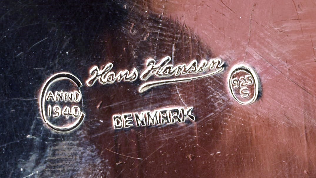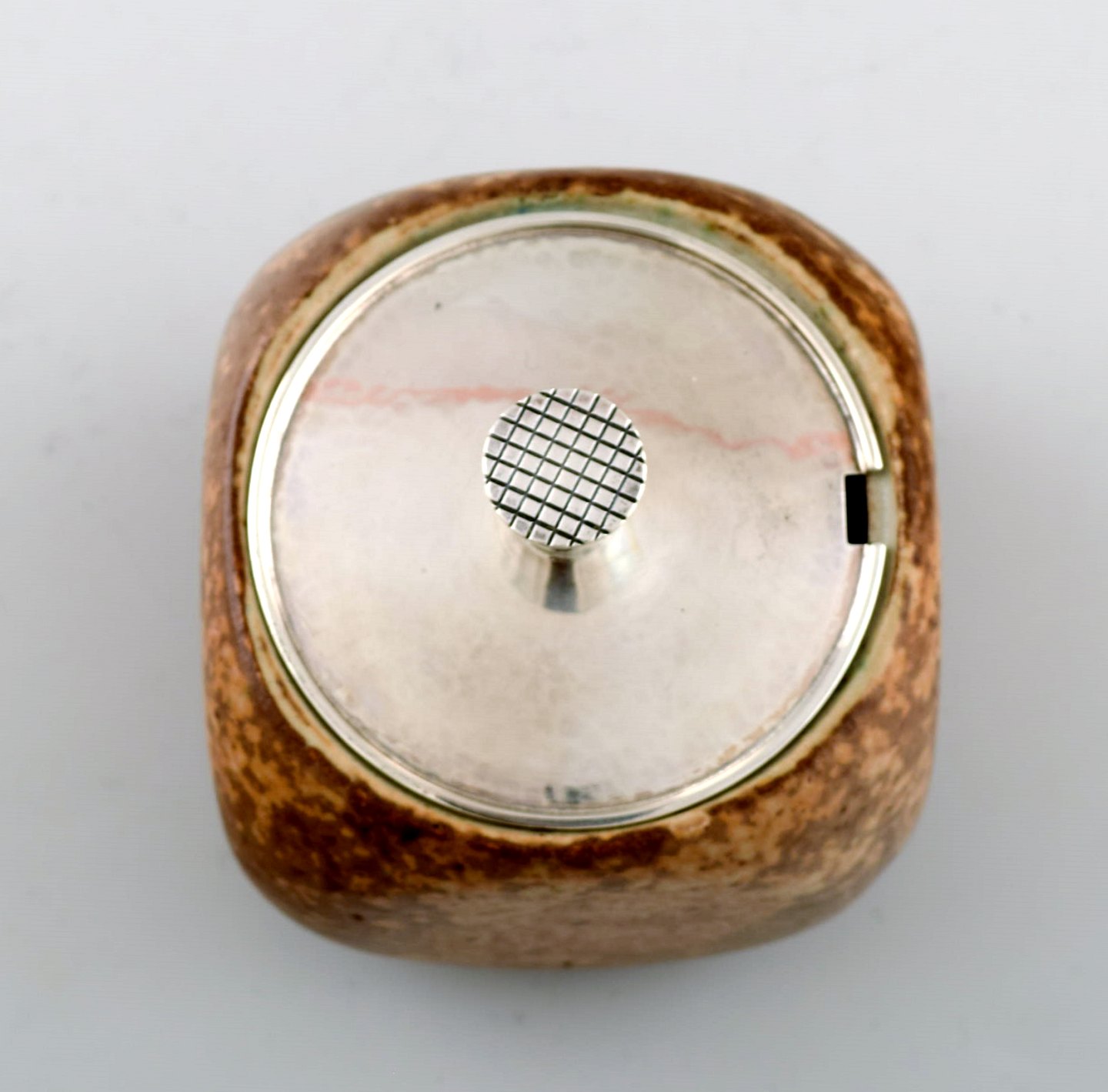 og Hans Hansen marmeladeske af hammerslået sterlingsølv, lågknop dekoreret med ternet mønster.