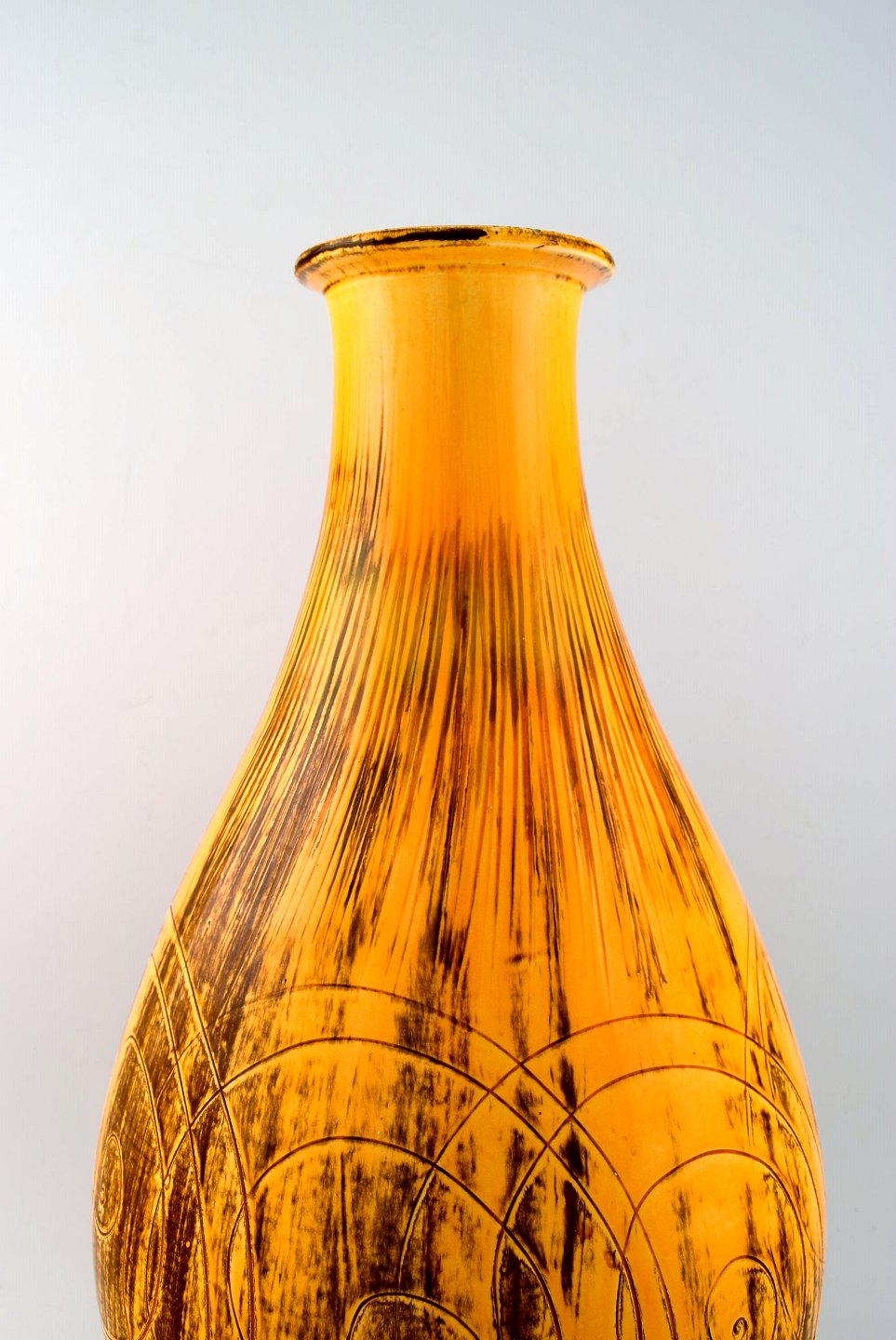 Stor Kähler, HAK, Svend Hammershøi, glaseret gulvvase i stentøj. I perfekt stand. Flot urangul glasur. Stemplet. Måler 53 x 26 cm.