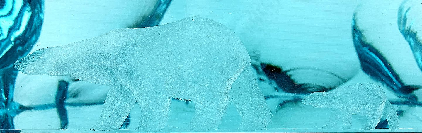 Vicke Lindstrand for Kosta Boda art glass block engraved with polar bear. Signed. Measures: 26.5 cm. X 15 cm. In perfect condition. Sweden 1960s / 70s.