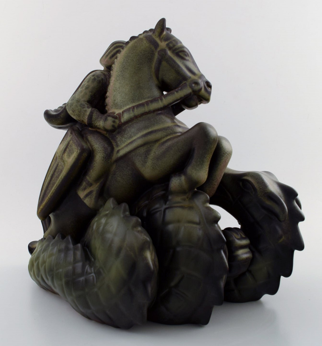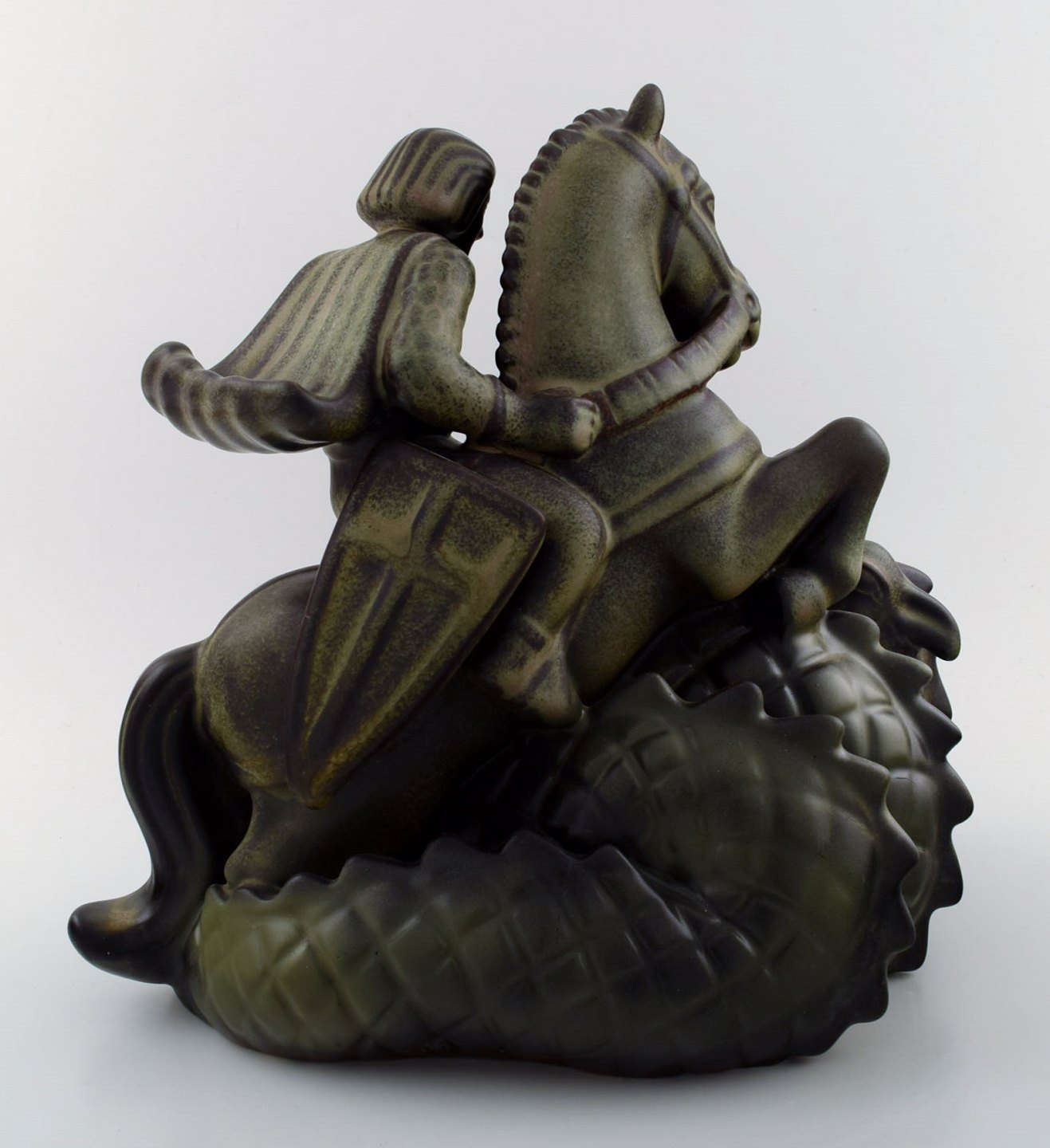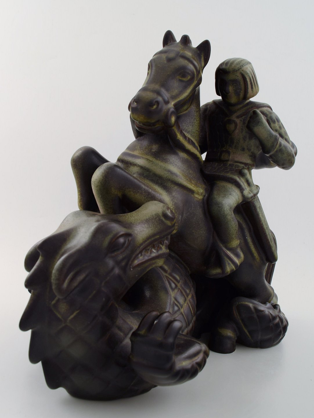 Very large Unika Rörstrand / Rorstrand stoneware figure by Gunnar Nylund, Saint George and the Dragon, unique work, museum quality.