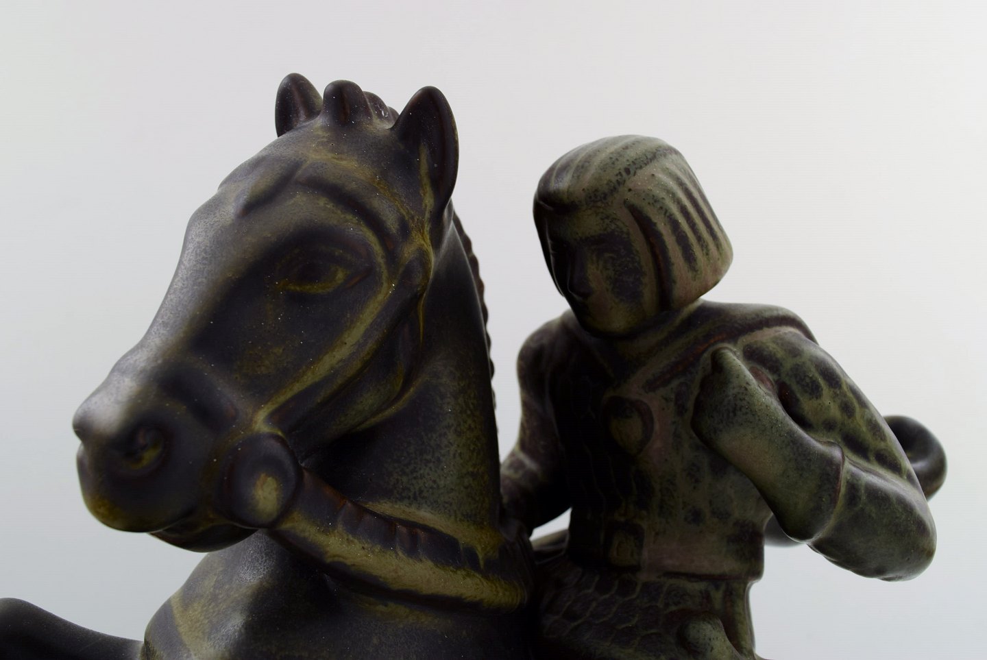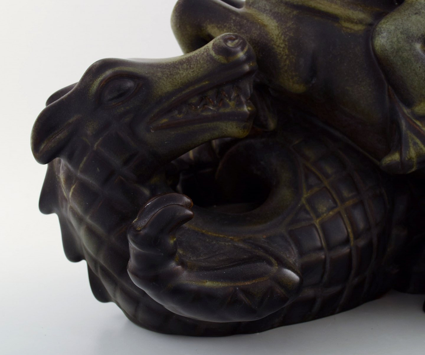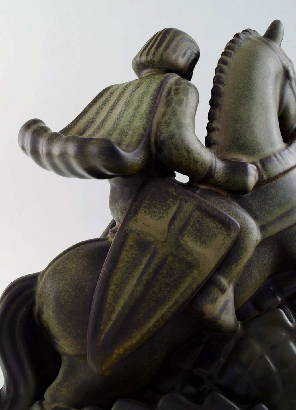 Very large Unika Rörstrand / Rorstrand stoneware figure by Gunnar Nylund, Saint George and the Dragon, unique work, museum quality.