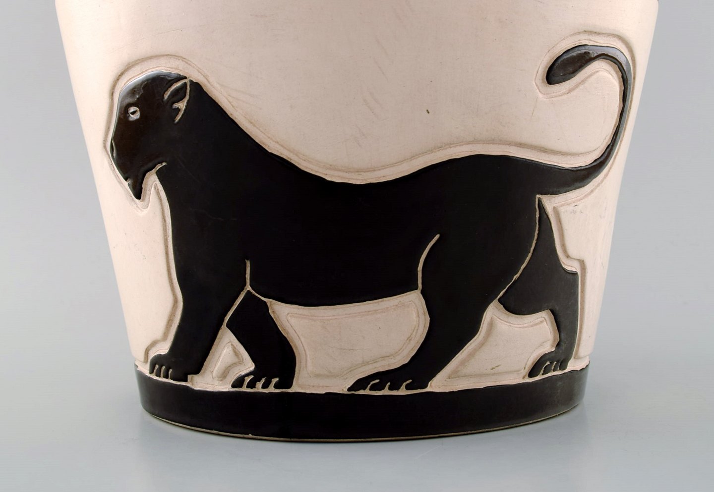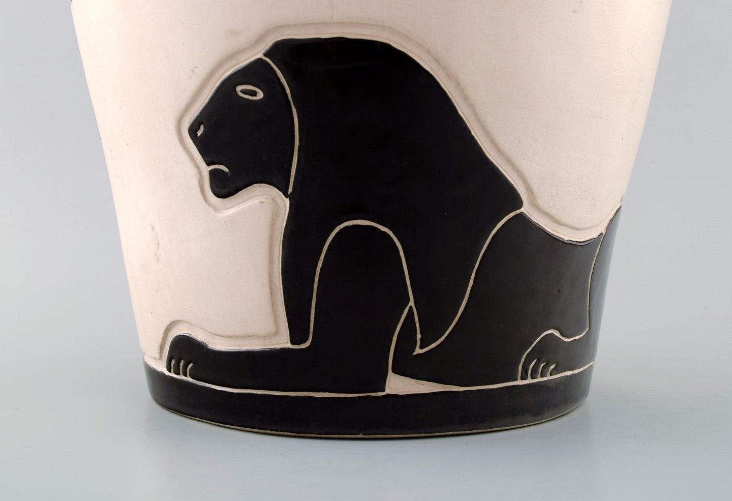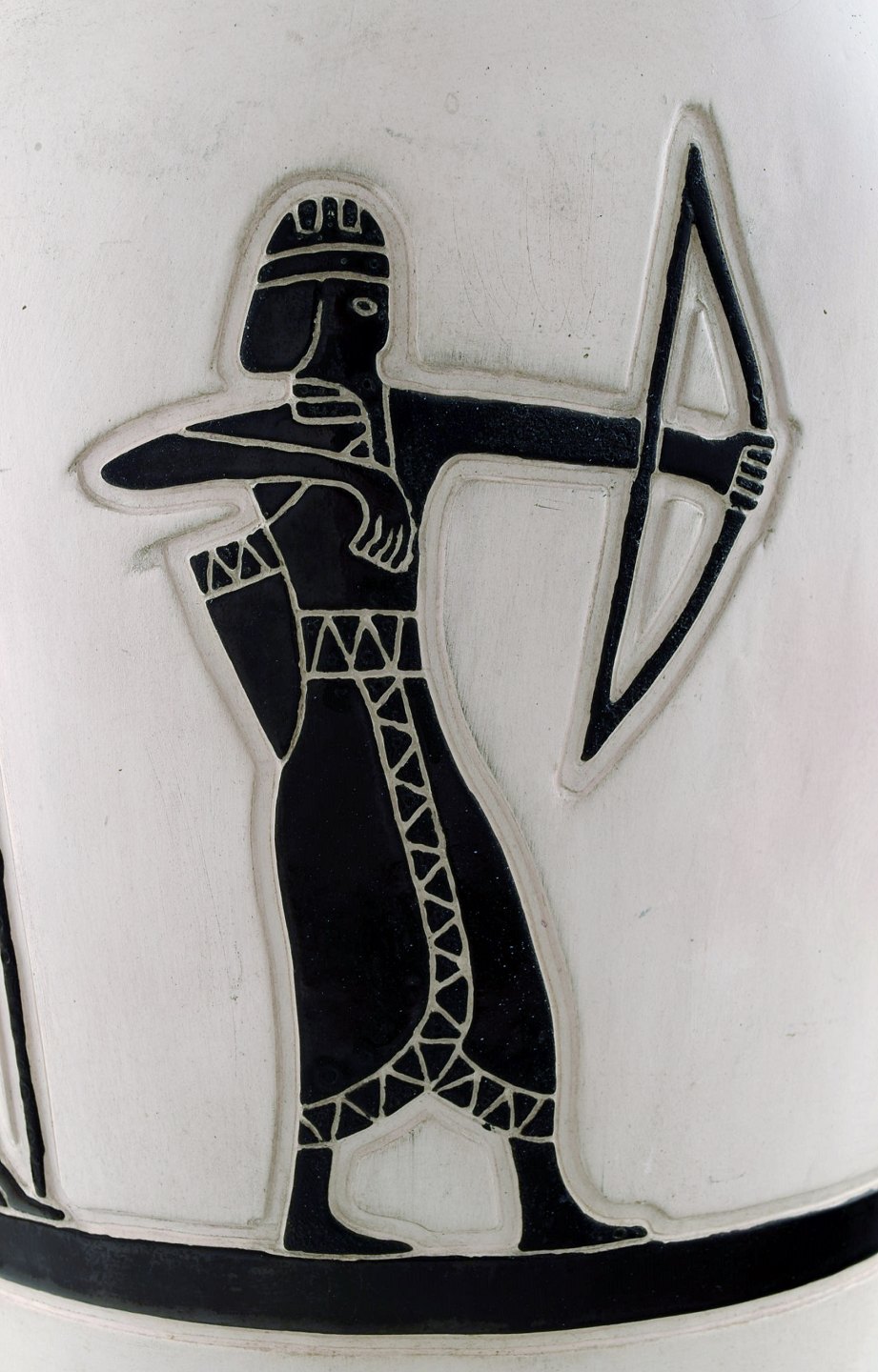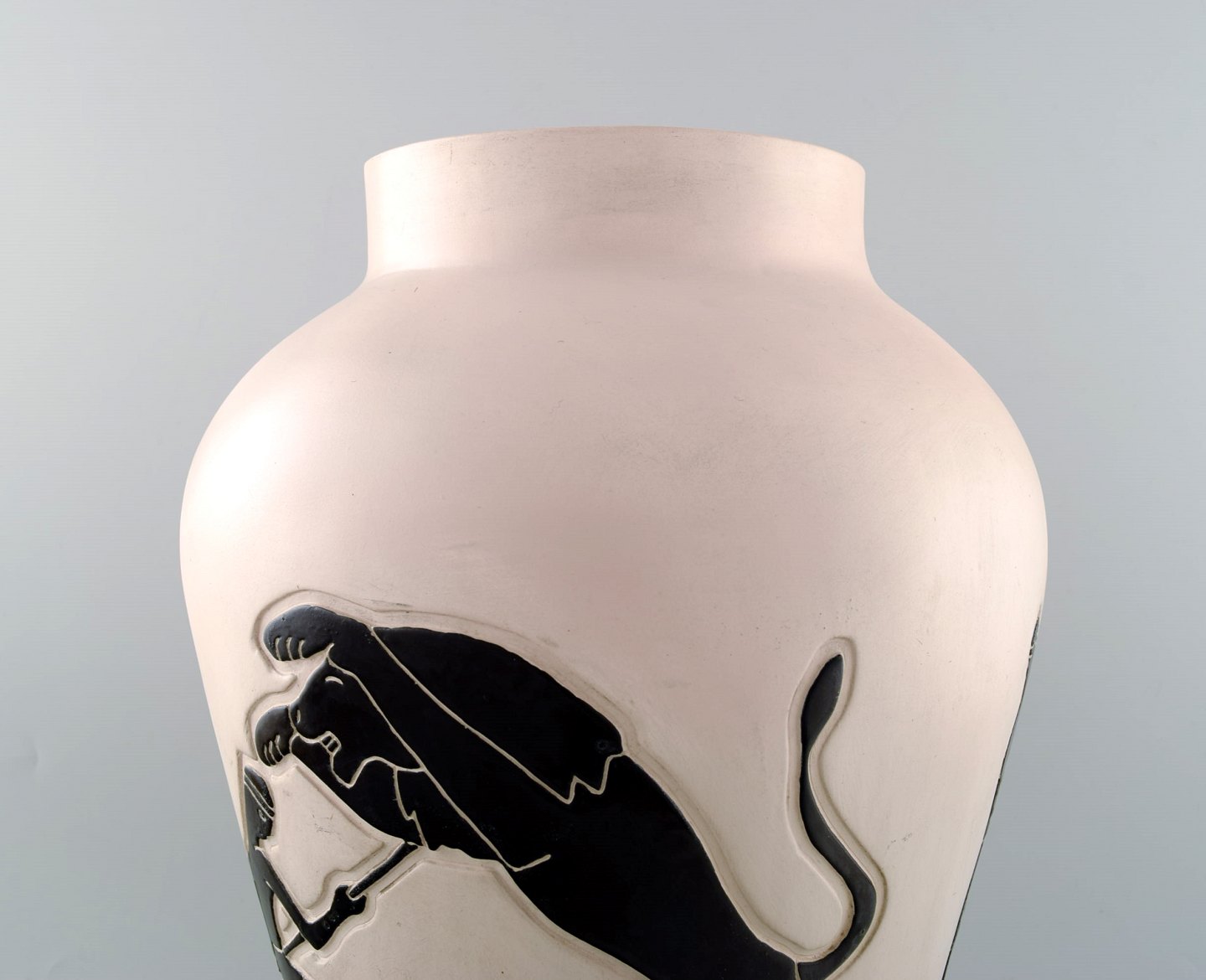 Robert Loiseleur for Lezoux, French ceramist. Large Modernist floor vase decorated with classic motifs. 1950 s. Stamped. In perfect condition. Measures: 45 cm. X 25 cm.
