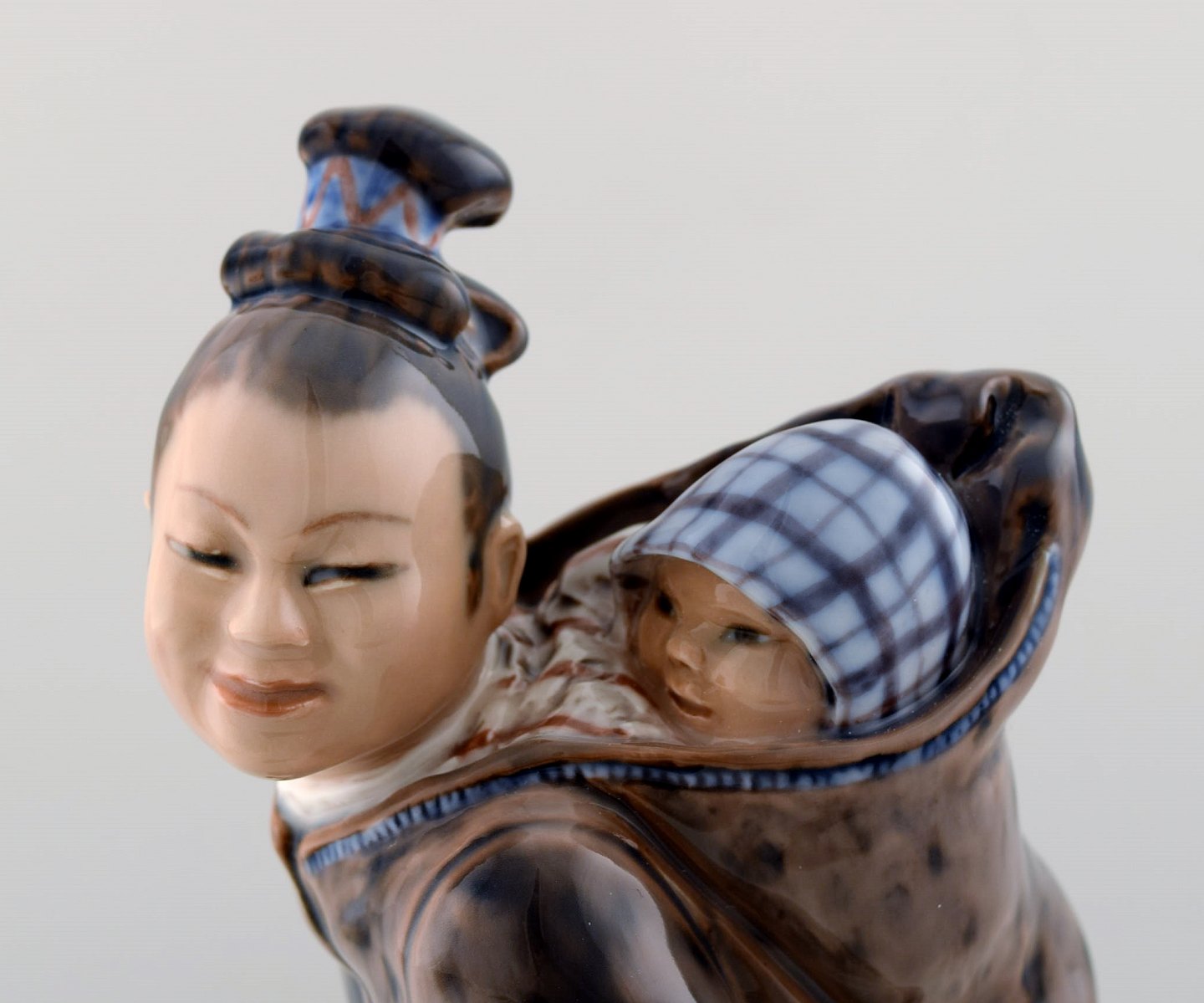 Dahl Jensen. Eskimokvinde med barn, figur af porcelæn, nr. 1227. I god stand. 2. sortering. Højde 27 cm.