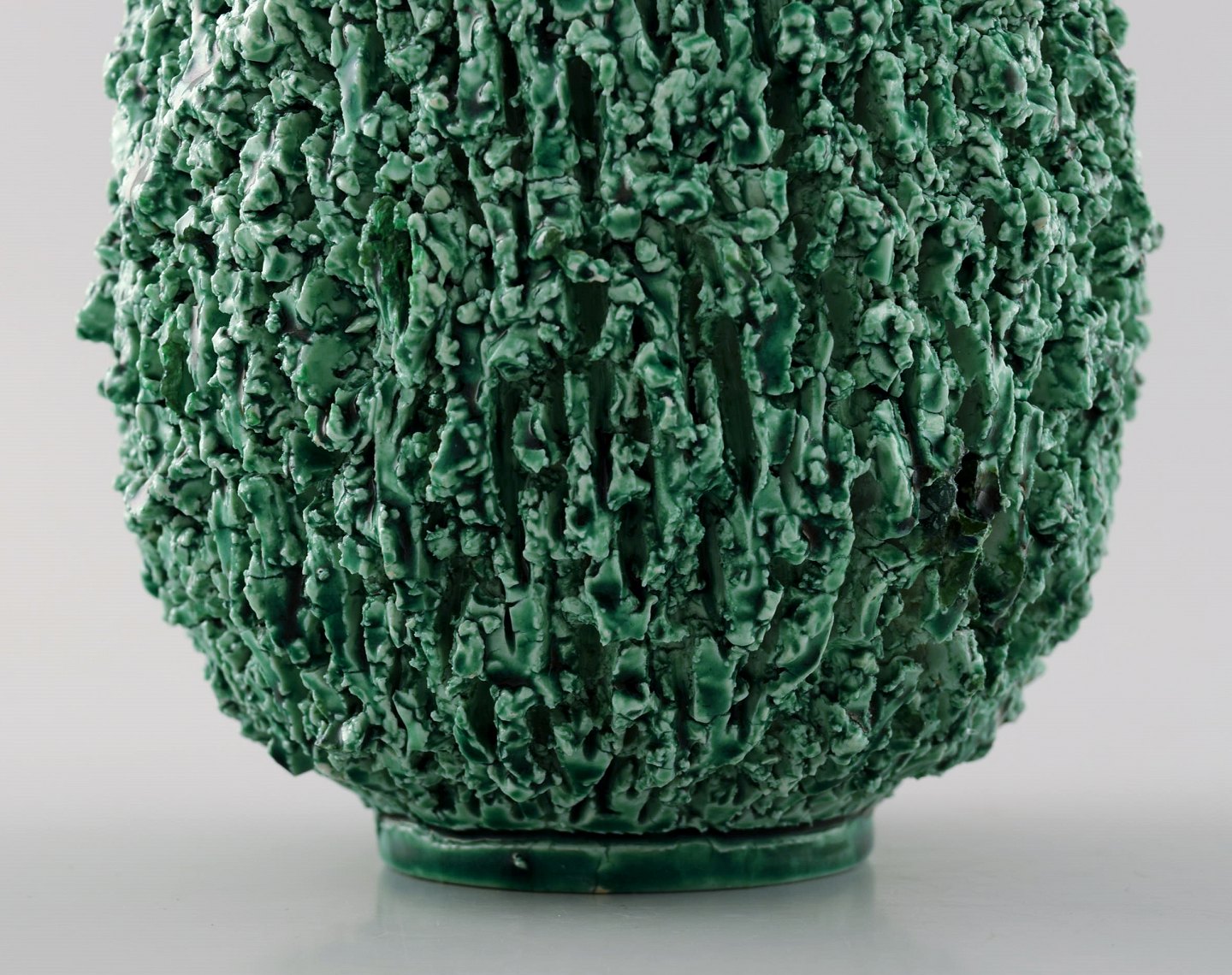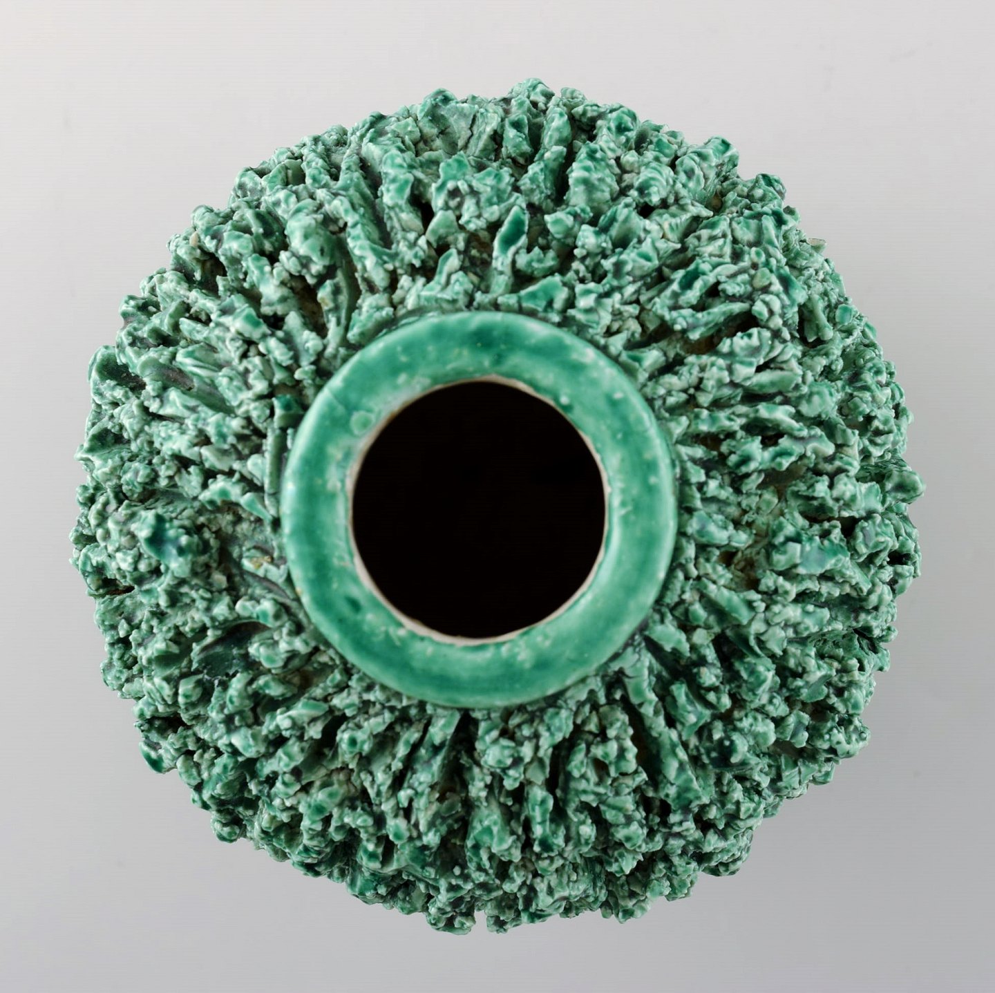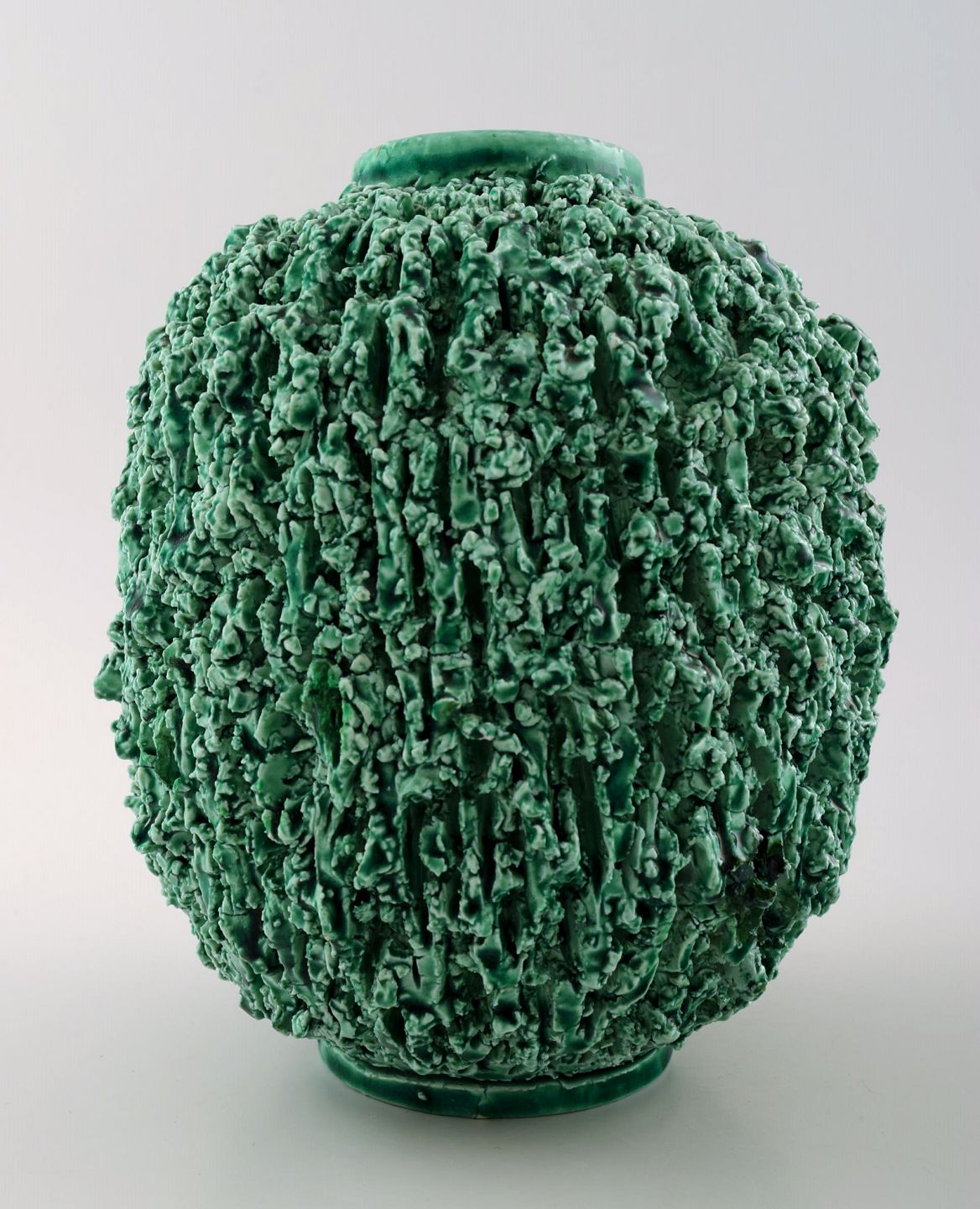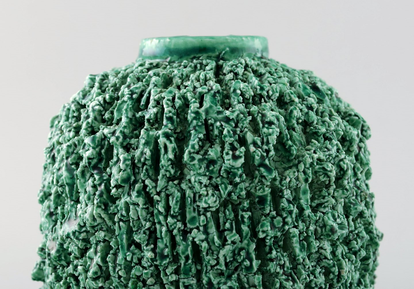 Rörstrand Gunnar Nylund "Chamotte" vase. Measures: 16 x 13 cm. Green glaze. Stamped. In perfect condition.