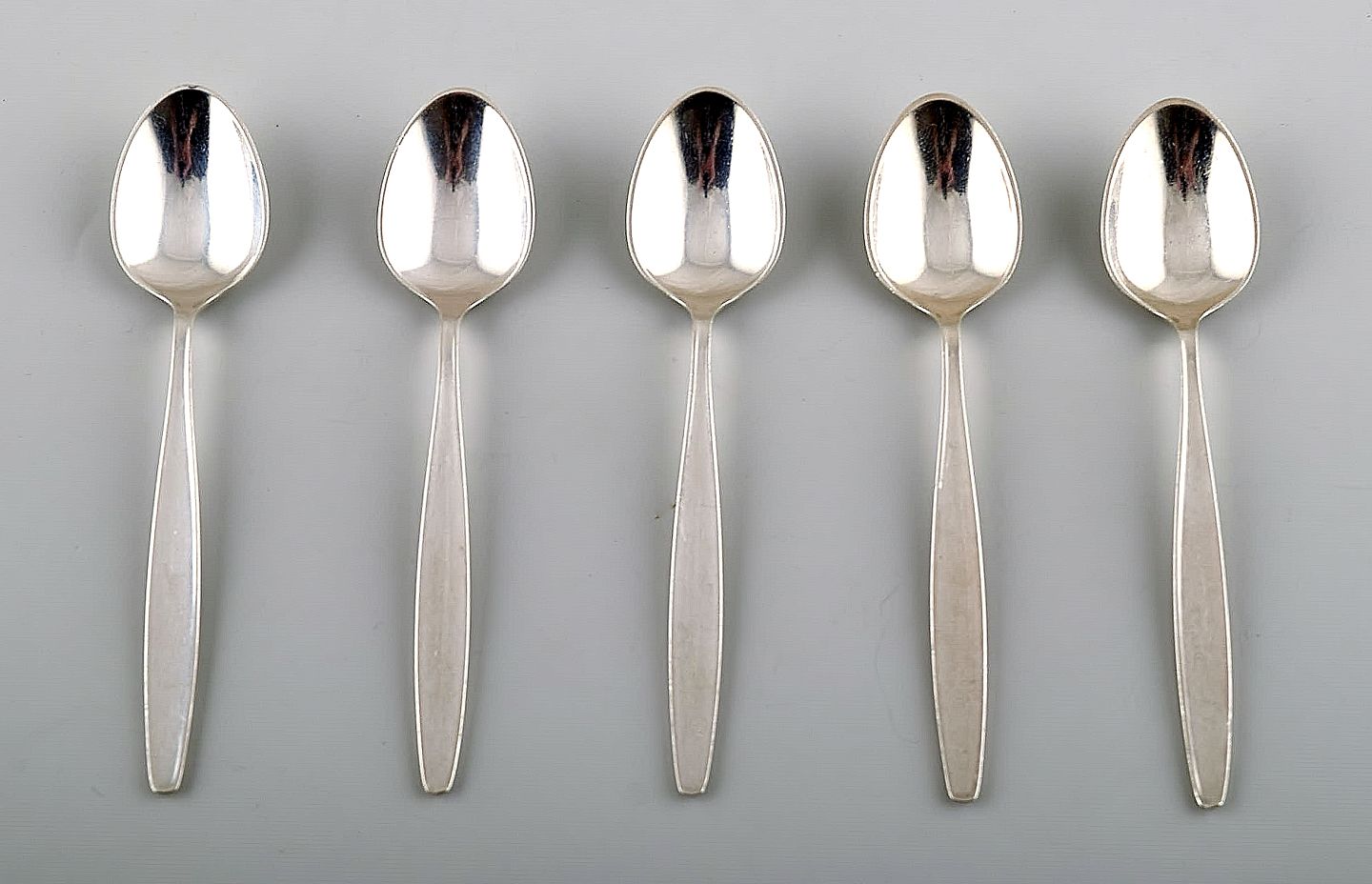 Georg Jensen Sterlingsølv Cypress 10 theskeer. Måler 11 cm. I perfekt stand. Stemplet.