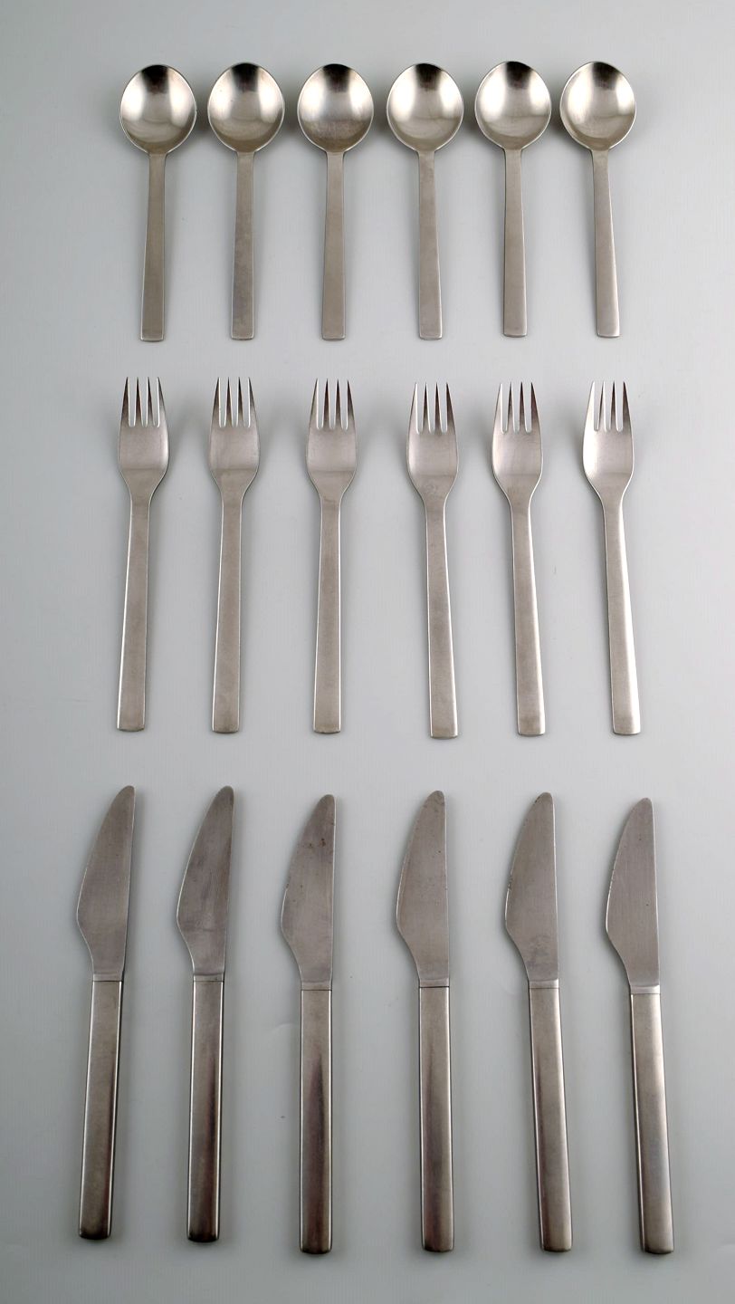 Georg Jensen rustfrit stål/stainless 'New York. Komplet sæt til 6 personer. Stemplet. Designet af Henning Koppel. Kniven måler 21 cm.