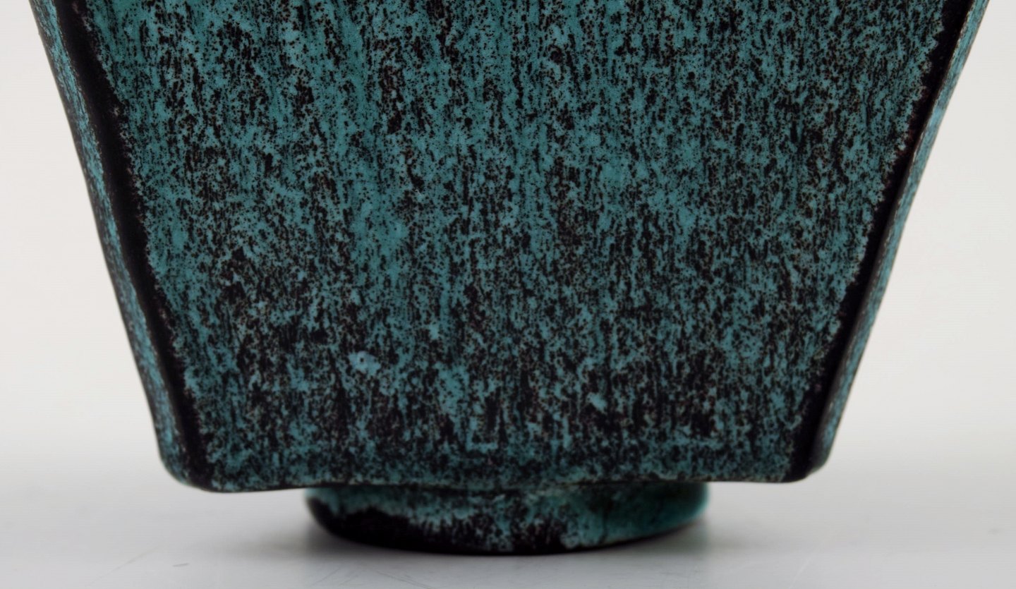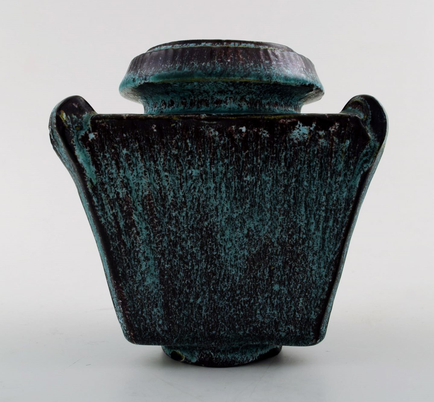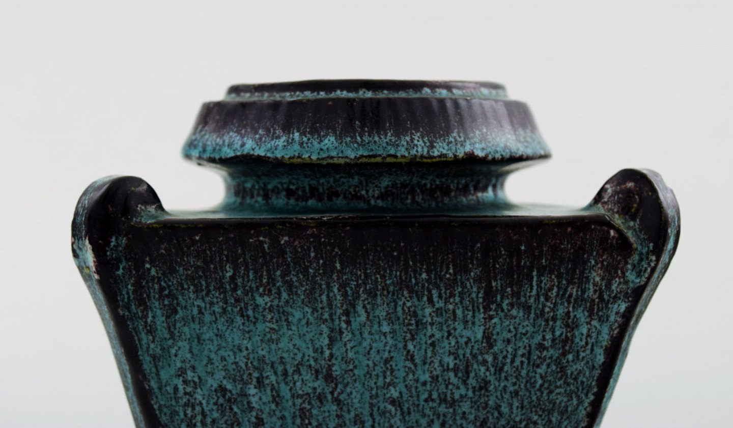 Svend Hammershøi for Kähler, HAK, glaseret stentøjsvase, 1930'erne. Designet af Svend Hammershøi. Turkisgrøn dobbeltglasur. Måler 12 x 11 cm. Stemplet. I perfekt stand.